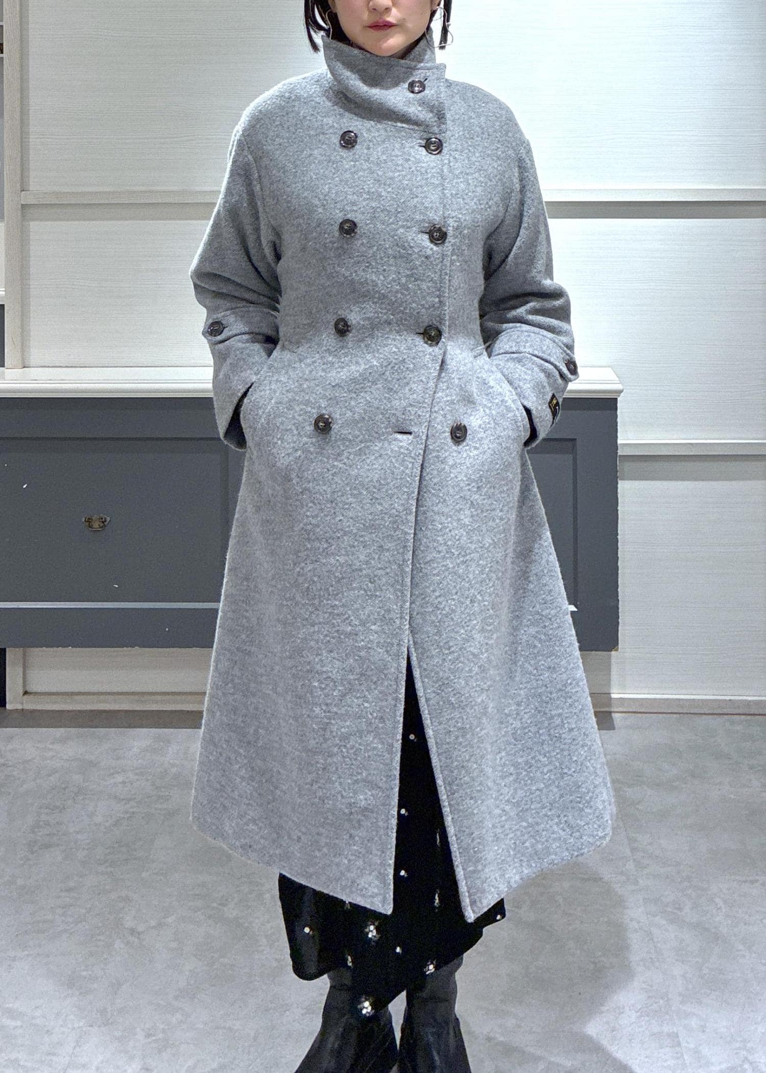 NEW!VIS尾州シャギースタンドカラーロングコート/静電気防止・WEB限定PS・TMサイズグレー系 / M¥21,890レビュー身長168センチでふくらはぎより上辺りの長めの着丈です!