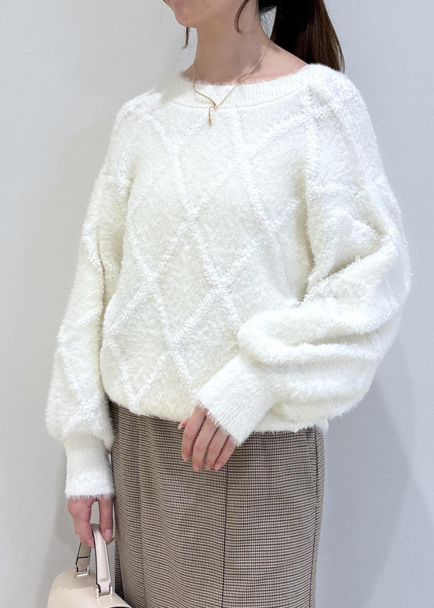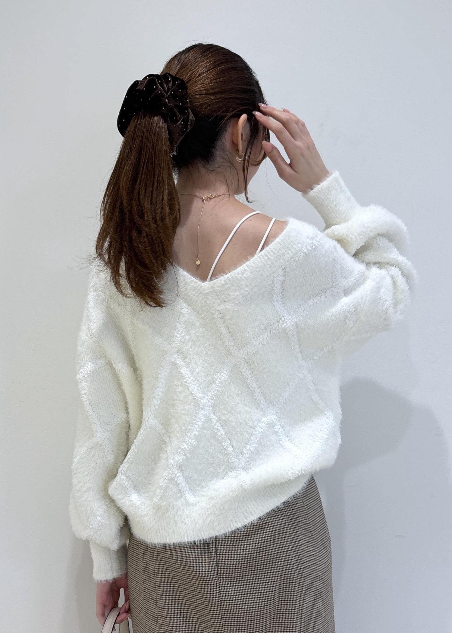 VISアーガイルフェザーニット/2WAY・イージーケアオフホワイト / F¥6,589レビュー前後2WAYで着用できます。