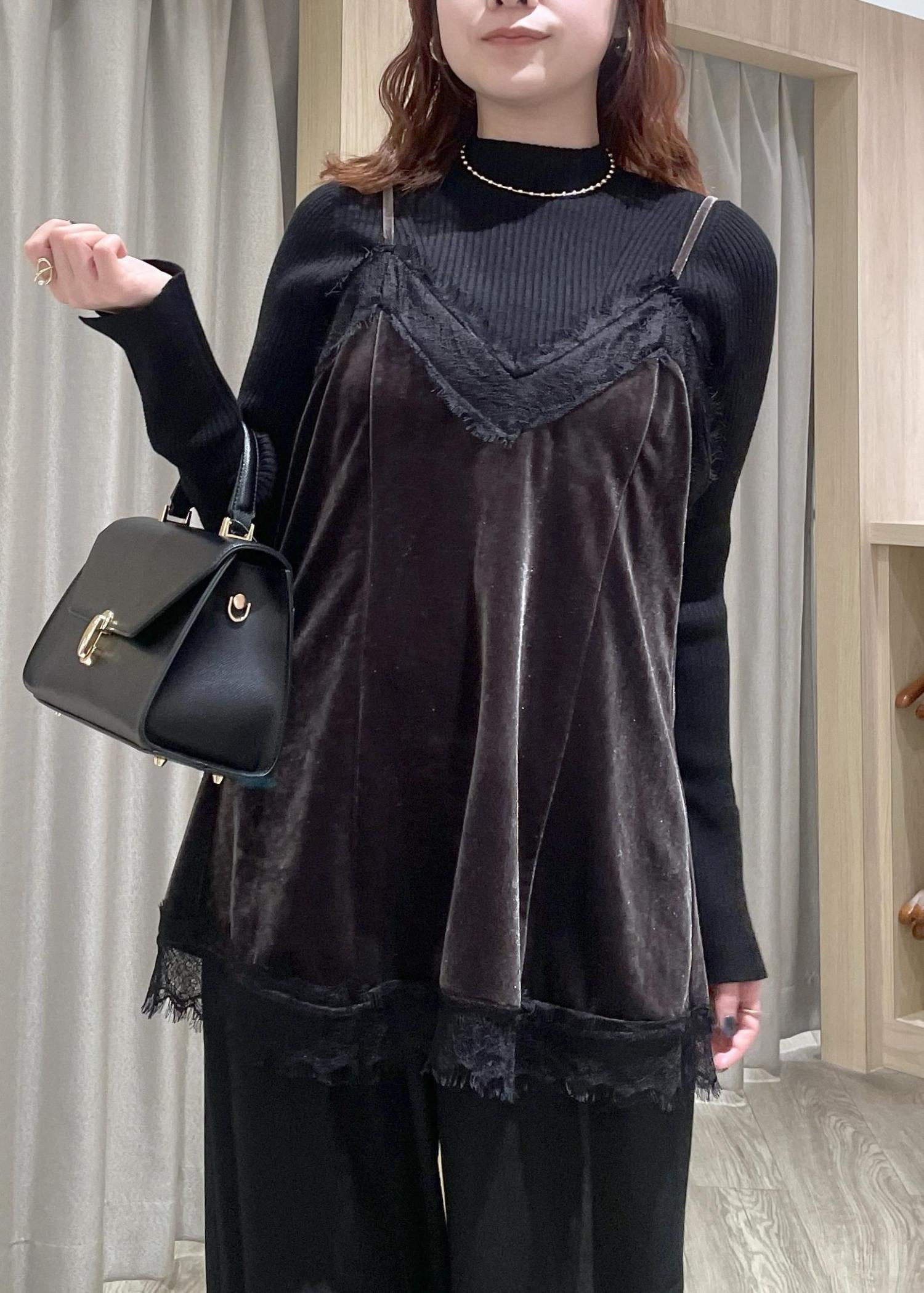 VISベロアレースキャミチュニックチャコール / F¥5,489レビュー普段のコーデにプラスするだけでお洒落見えが叶う優秀アイテムです!ベロア×レースで華やかさもあります。
