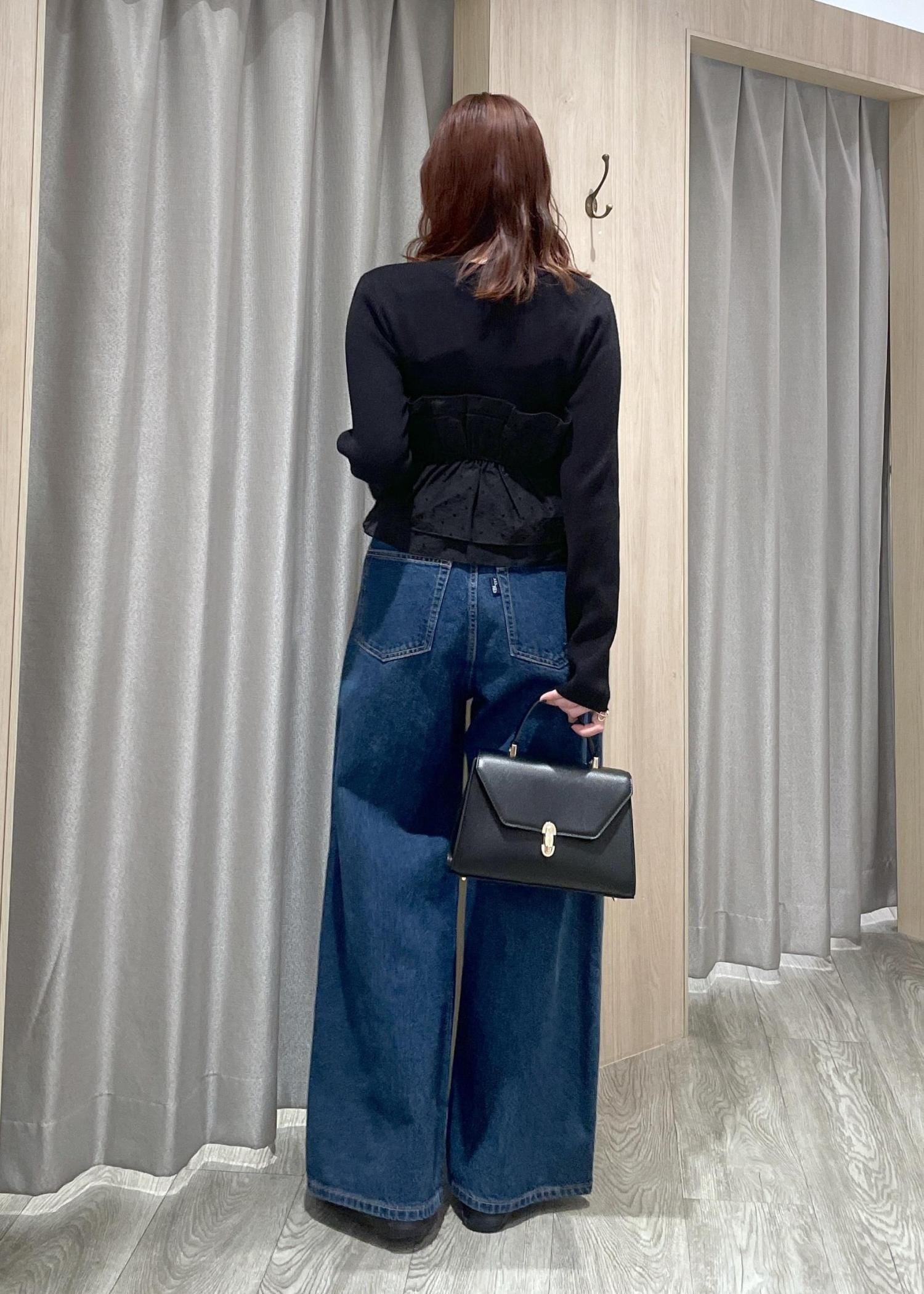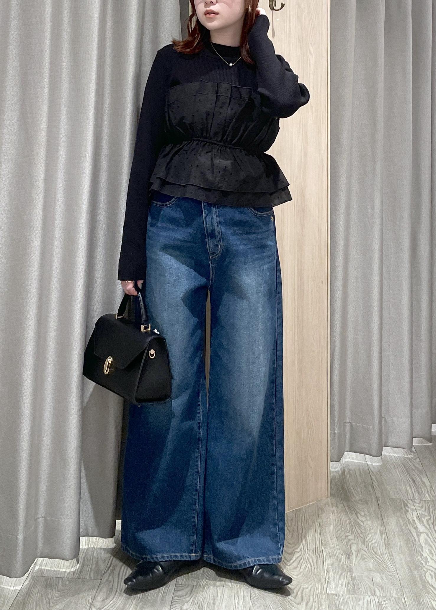 VIS【POLO BCS】VIS別注クロスベルトストレートワイドデニムブルー / M¥9,900レビュー身長159cm/Mサイズ着用。ずるっと履けるこのサイズ感で今年らしくて可愛いです♡太すぎないストレートシルエットなので大きく膨張して見えたりはしないです!シーズンレスで使える万能デニム。