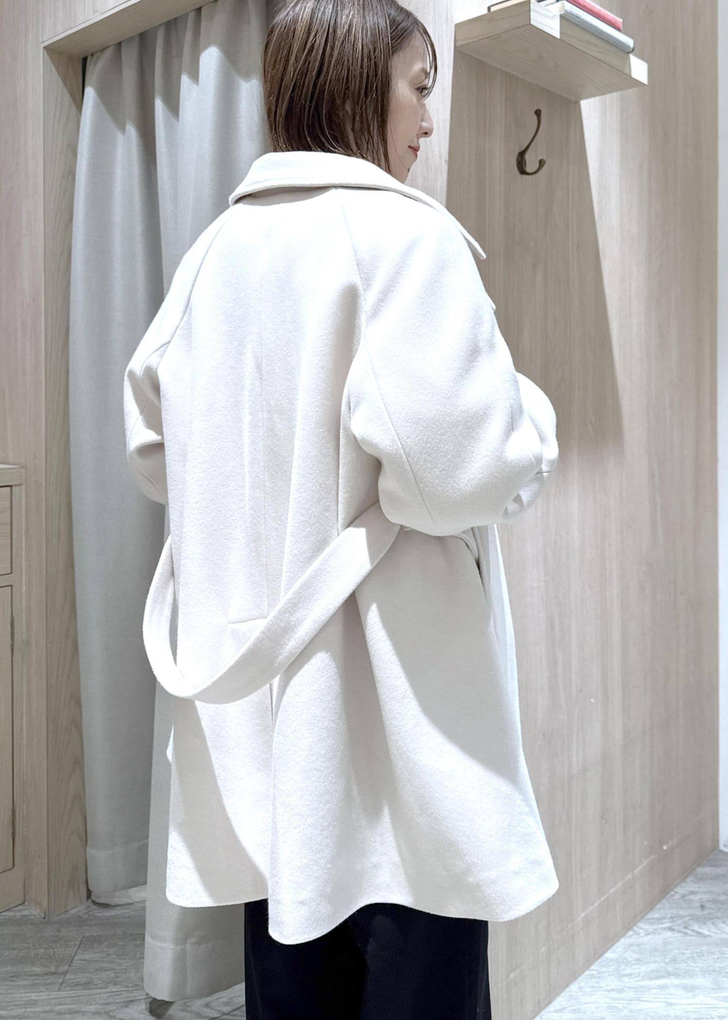 アウターも白系で合わせて爽やか通勤スタイルにしました!