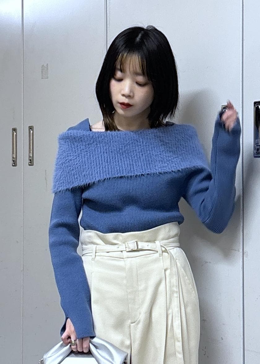 NEW!VISフェザーヤーンオフショルもちもちリブニット/イージーケアブルー系 / F¥5,929レビュー人気のオフショルニットの、秋冬バージョン!