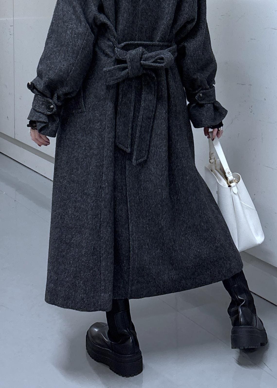 VIS尾州シャギースタンドカラーロングコート/静電気防止・WEB限定PS・TMサイズチャコール / S¥21,890レビュー襟が大きめで小顔効果。