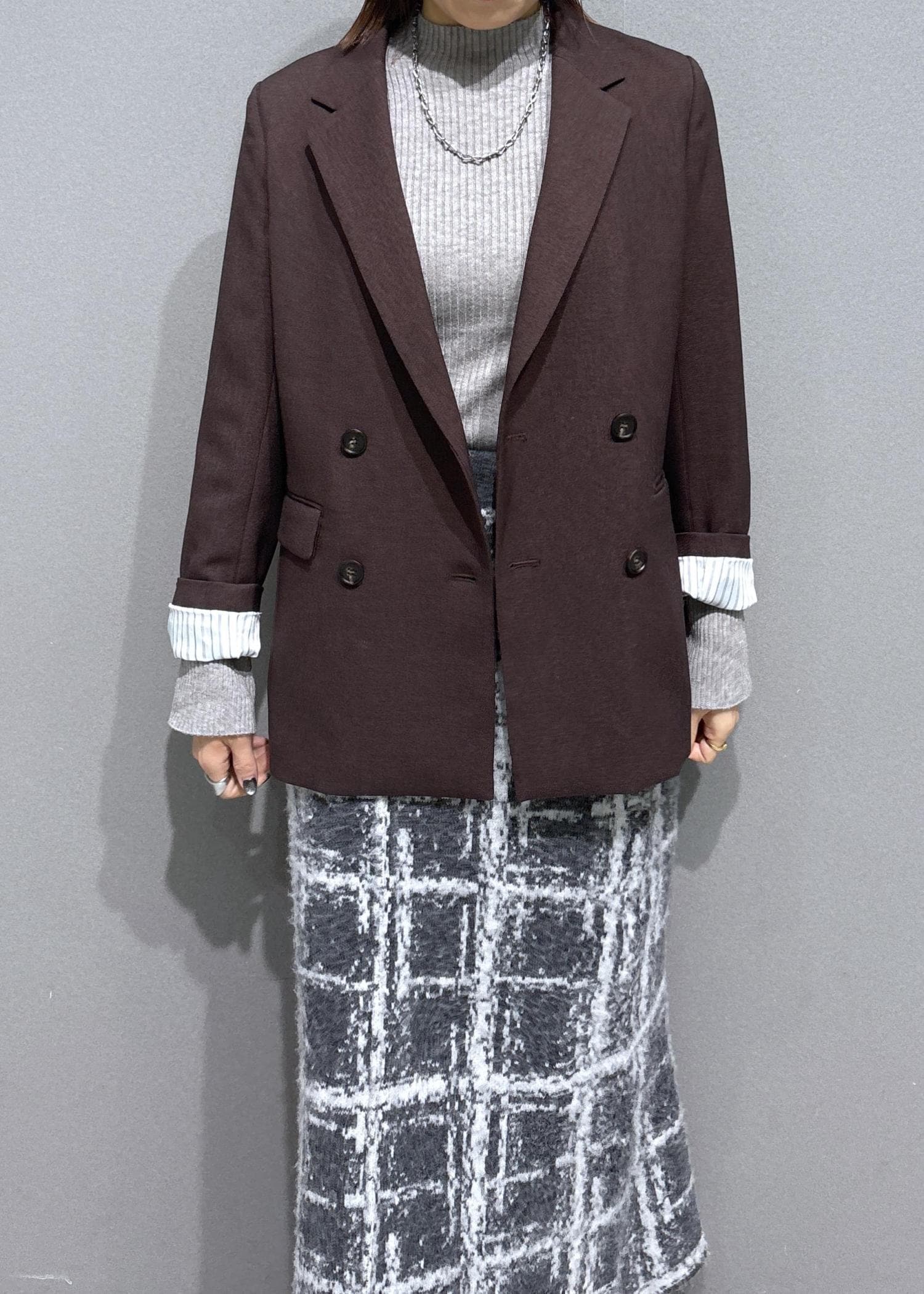 VIS【美easy】ウーリッシュダブルブレストテーラードジャケット【セットアップ対応/洗える】ダークブラウン / M¥8,899レビュー秋冬仕様ですが、さらっとした生地で着やすい◎