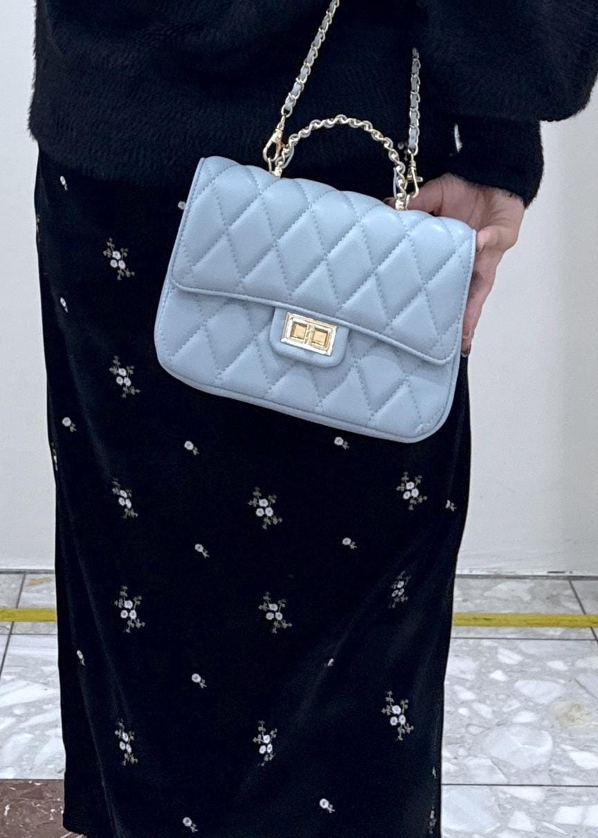 VISチェーンハンドルキルティングショルダーバッグ/2WAY・一部WEB限定カラーサックス / F¥6,919レビューしっかりと容量の入る大きさで高見えもバッチリなアイテム!