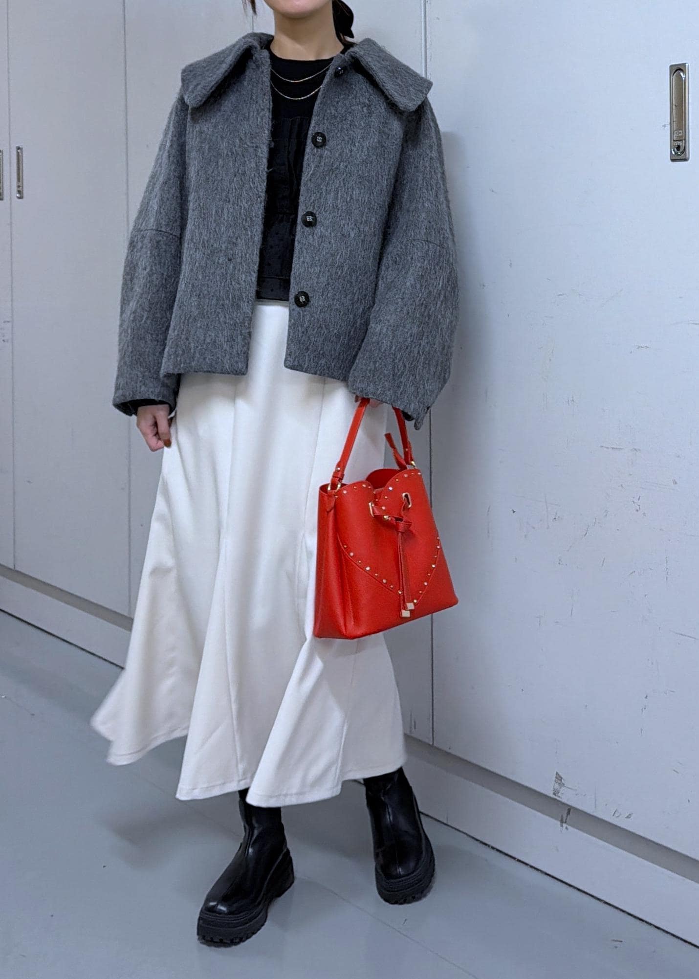 VIS【アウター総選挙1位】ビッグカラーモモンガシャギーショートコートグレー / M¥10,989レビュー167cmの身長でお尻にかかるかなぐらいの長さです。
