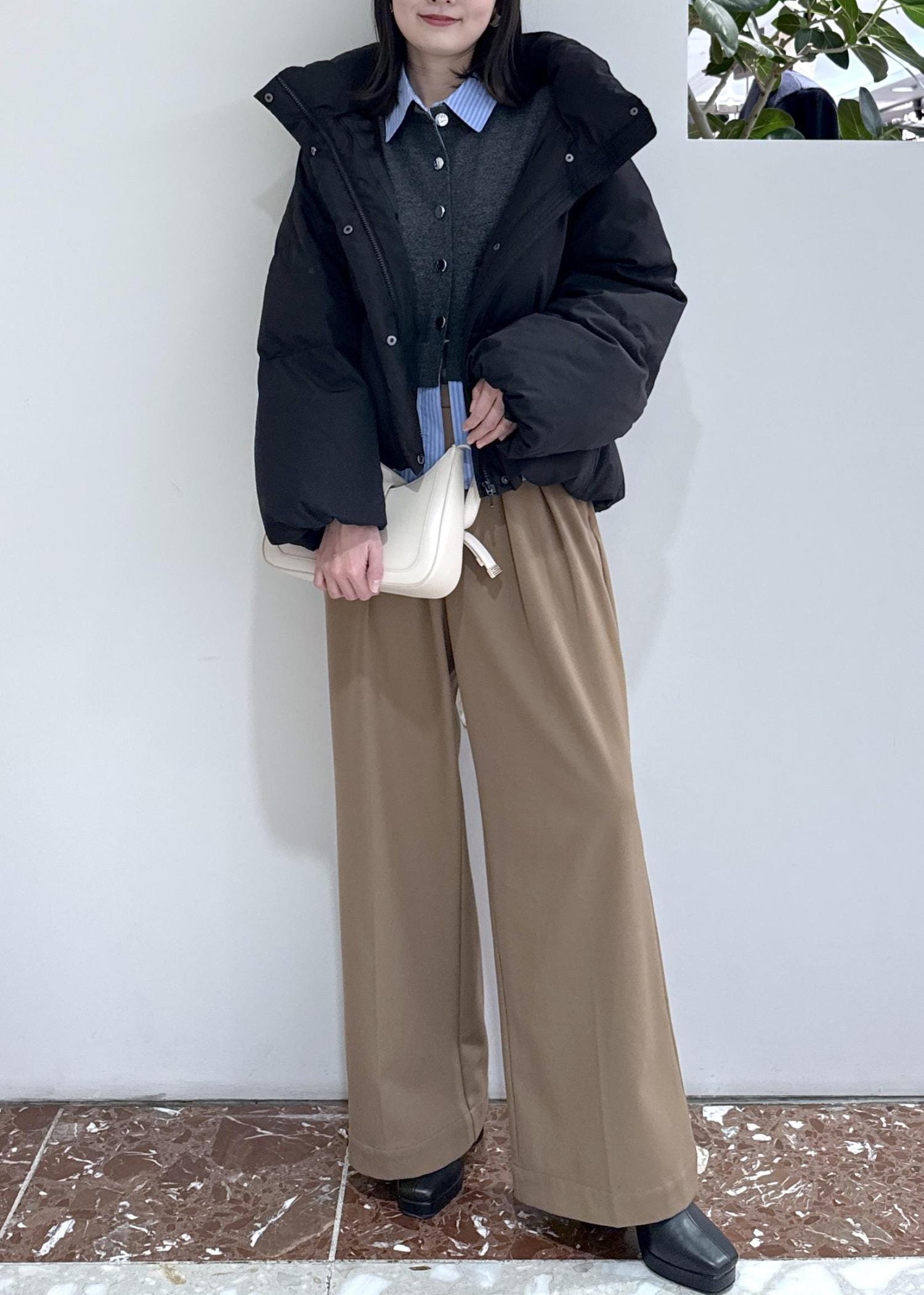 程よくゆとりがあるので、厚手のニットも合わせやすいです。