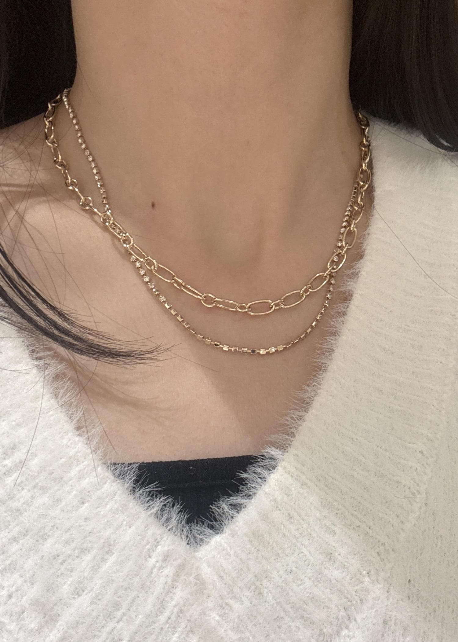VISラインストーンレイヤードネックレスゴールド / F¥2,959レビュー1つでレイヤードできる優秀アイテムで首元が一気に華やかになります!