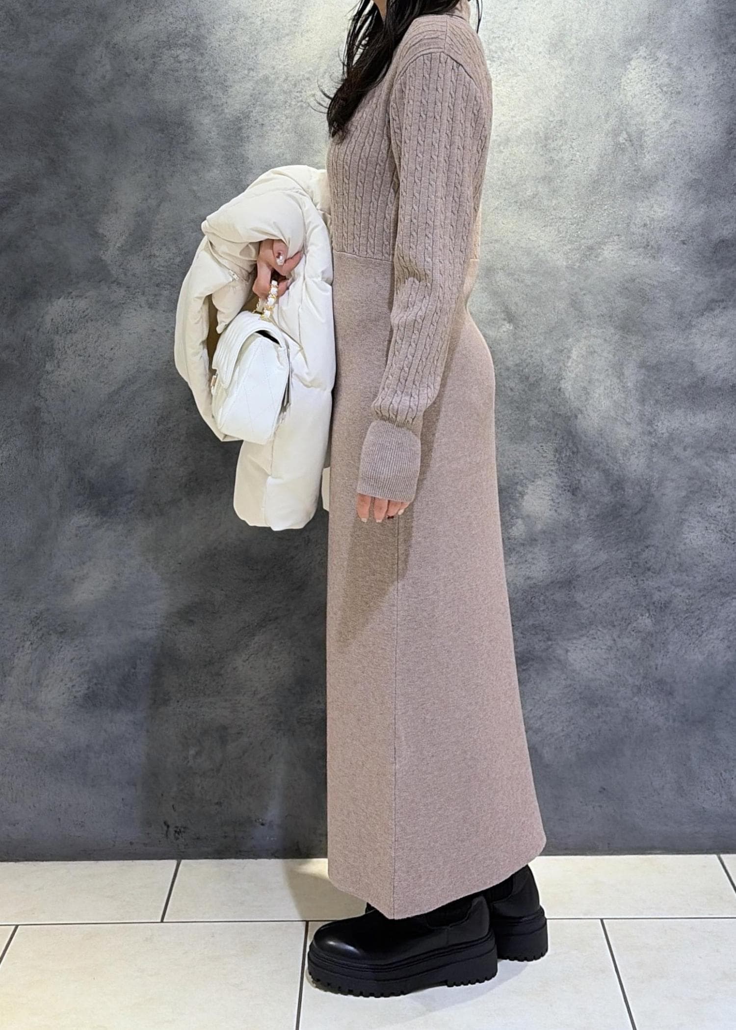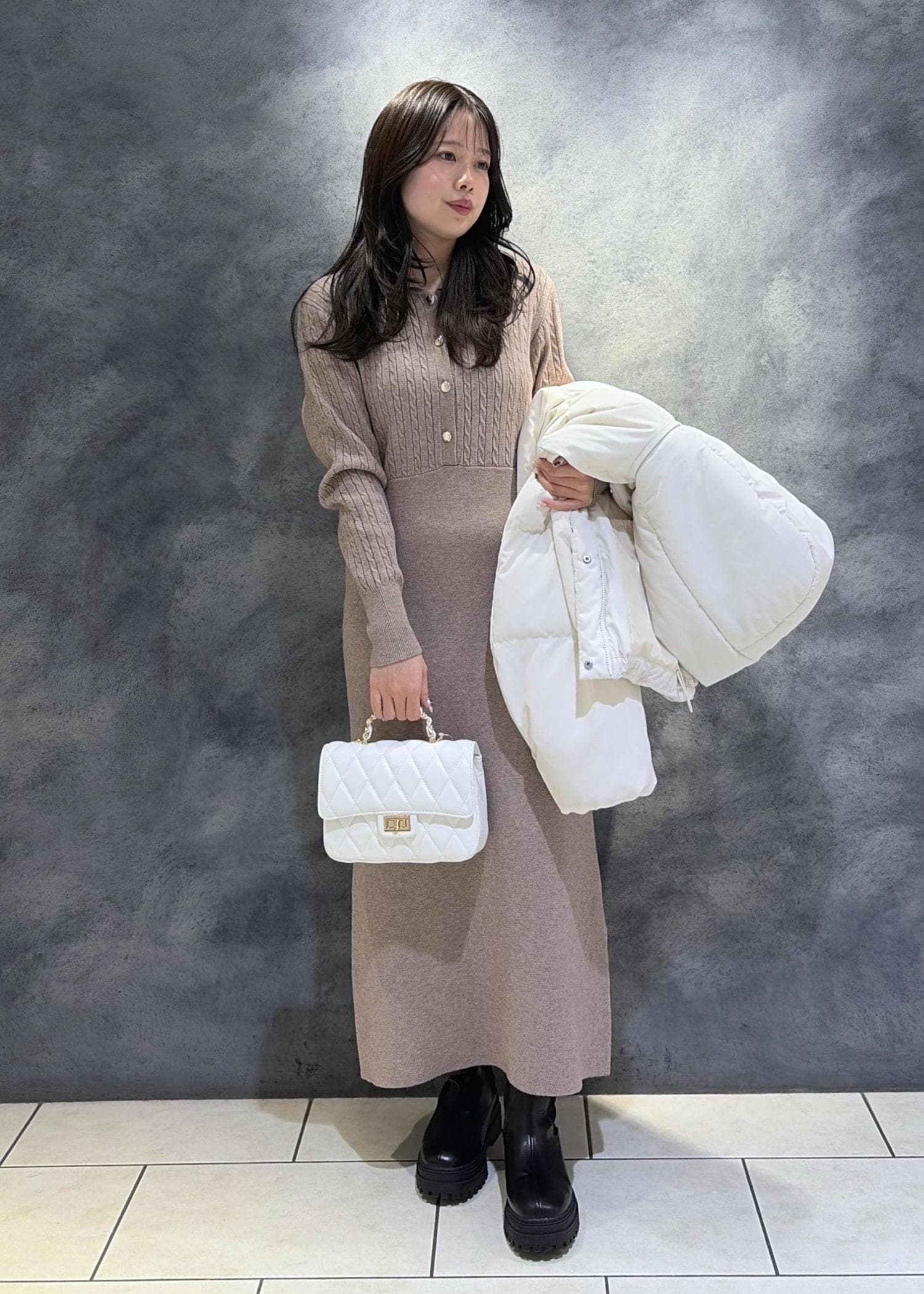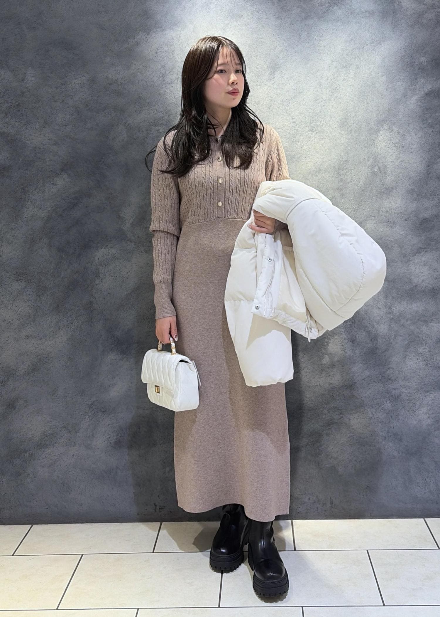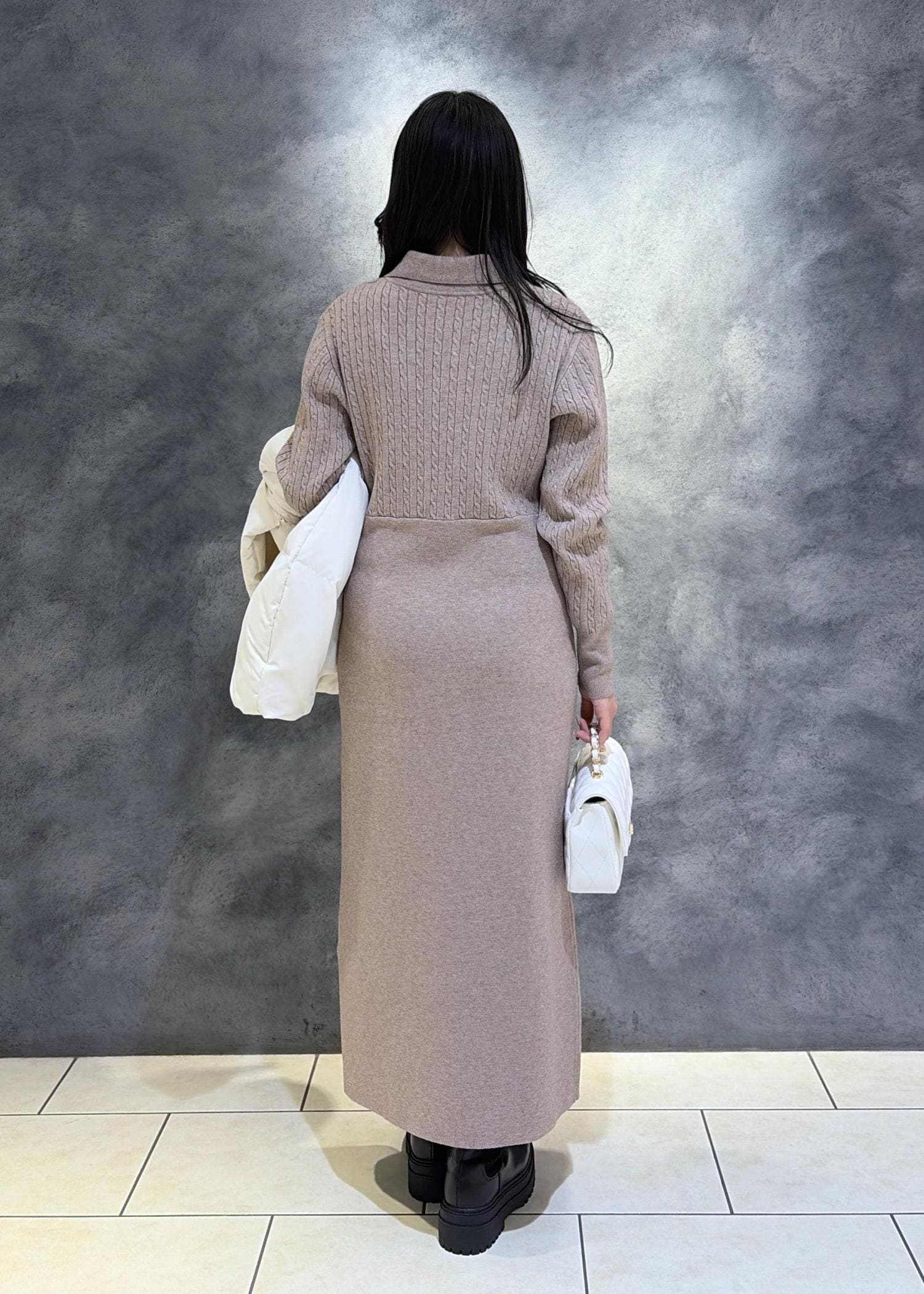 VISポロケーブルモチモチニットワンピースベージュ系 / F¥8,899レビュー身長160cmでくるぶしが見える丈感。