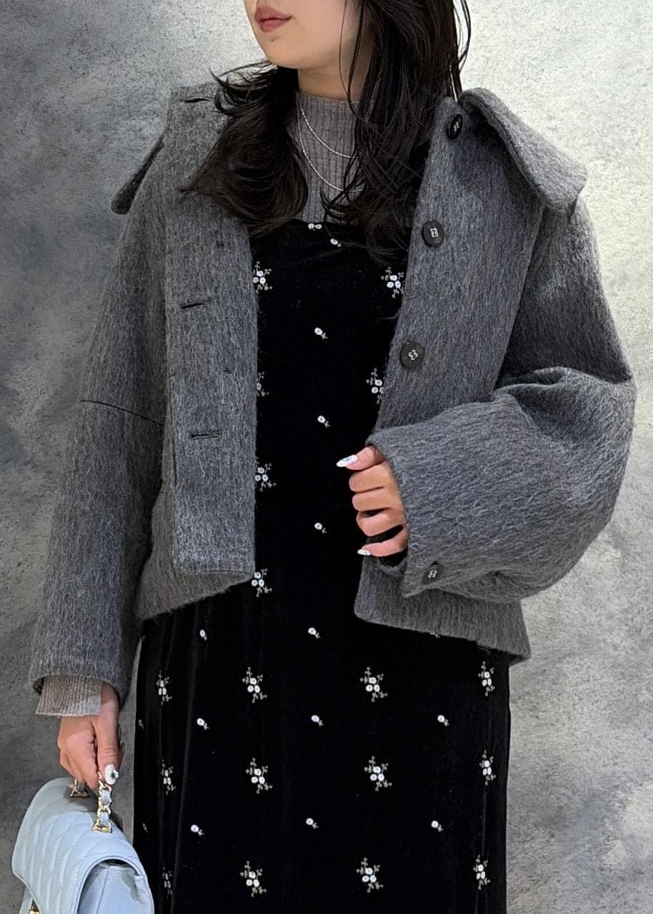 VIS【アウター総選挙1位】ビッグカラーモモンガシャギーショートコートグレー / S¥10,989レビュー身長160cmでSサイズ着用。