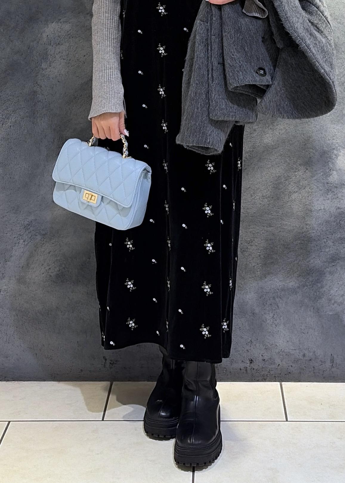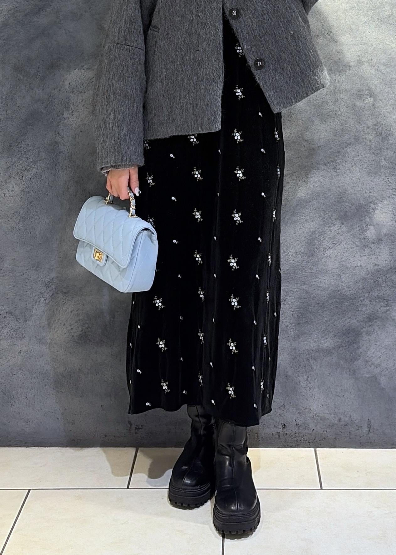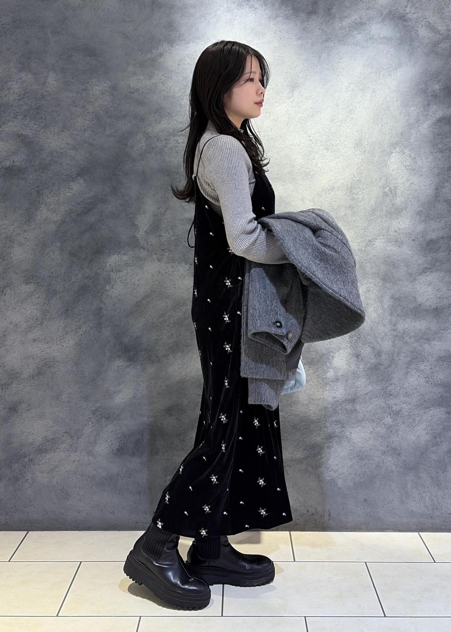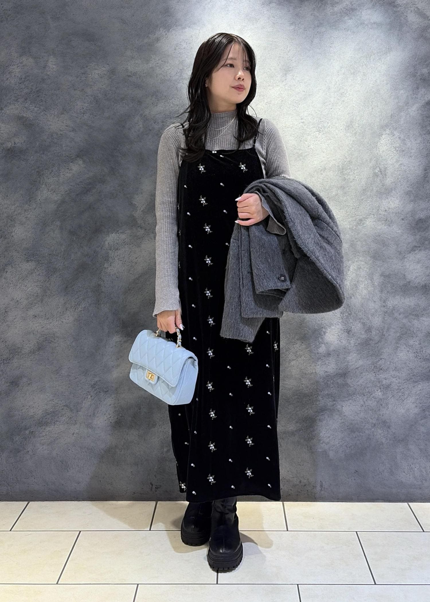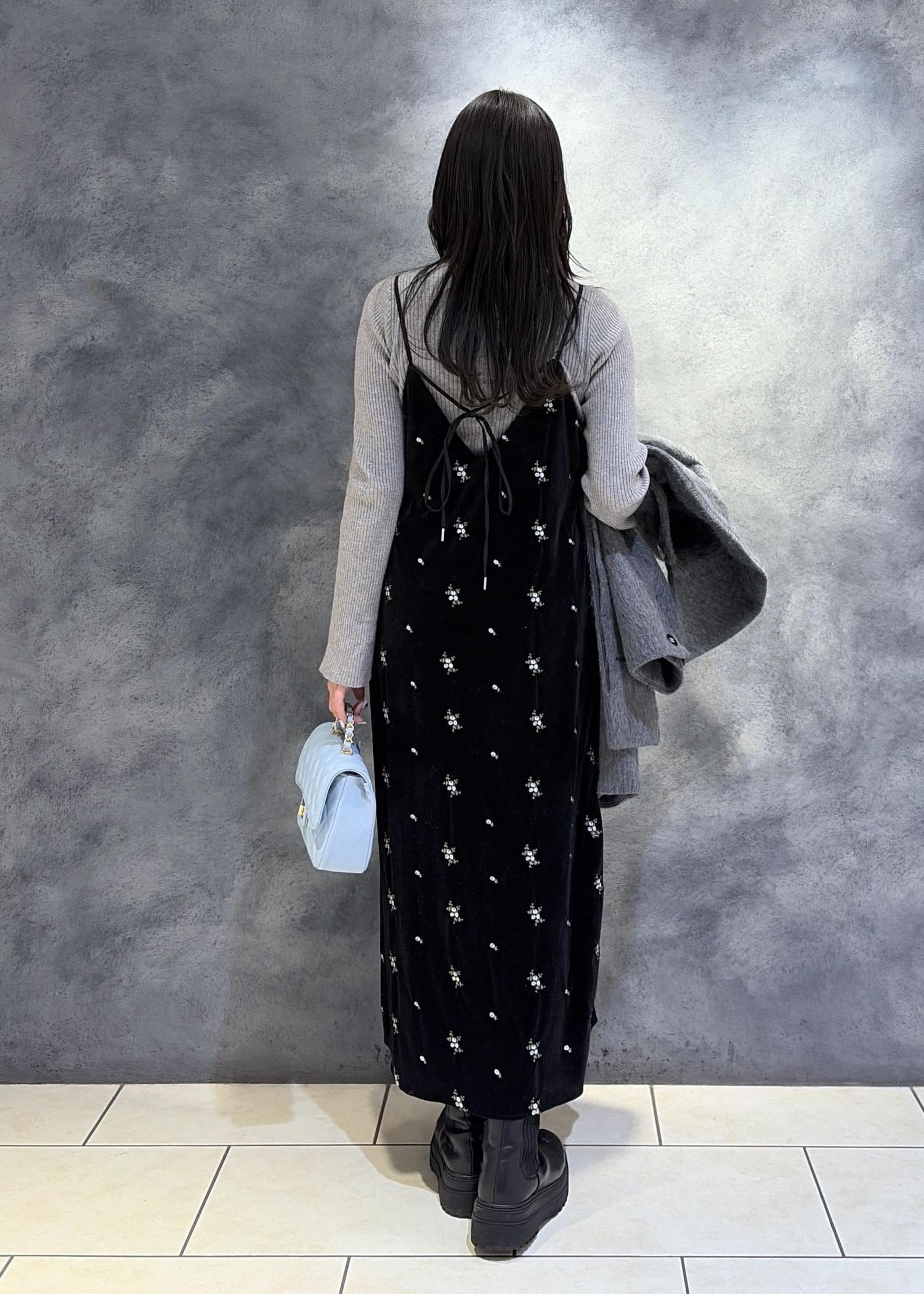 VIS刺繍アソートベロアキャミワンピース/2WAYブラック系 / F¥8,899レビュー身長160cmで足首が見える丈感。