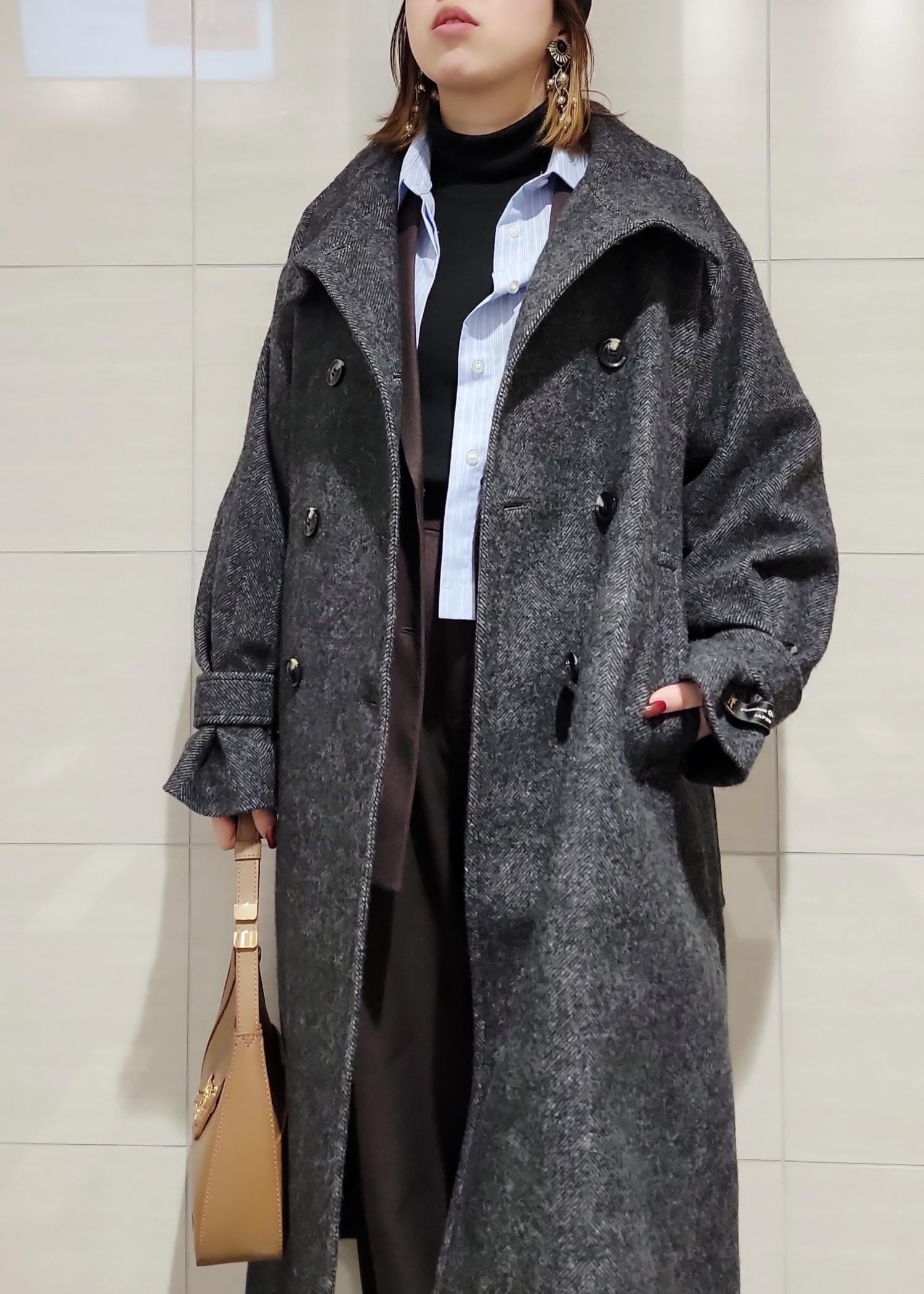 VIS尾州シャギースタンドカラーロングコート/静電気防止・WEB限定PS・TMサイズチャコール / S¥21,890レビュー軽量素材で程よくゆとりのあるサイズ感なのでニットの上からでも羽織りやすいです!