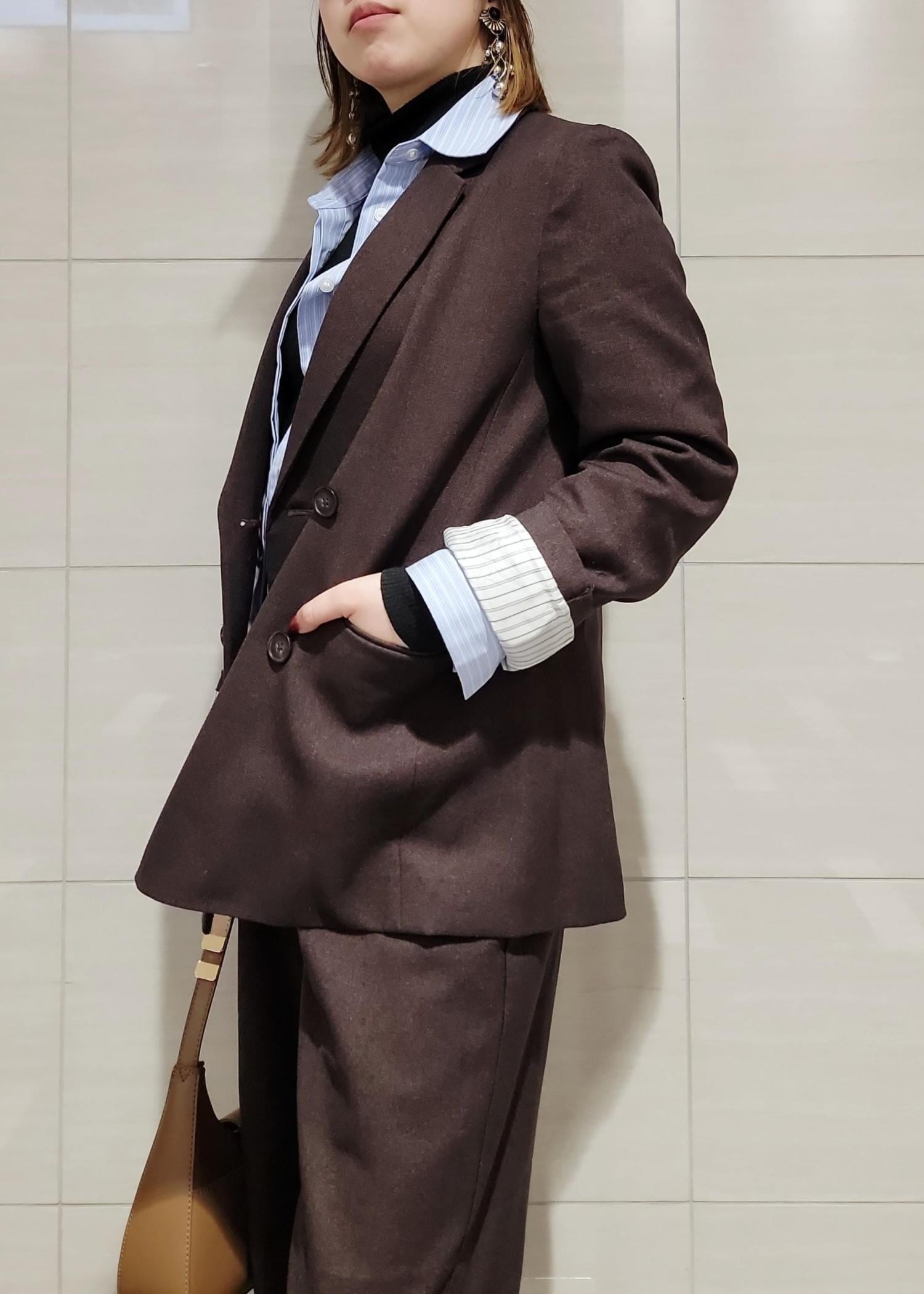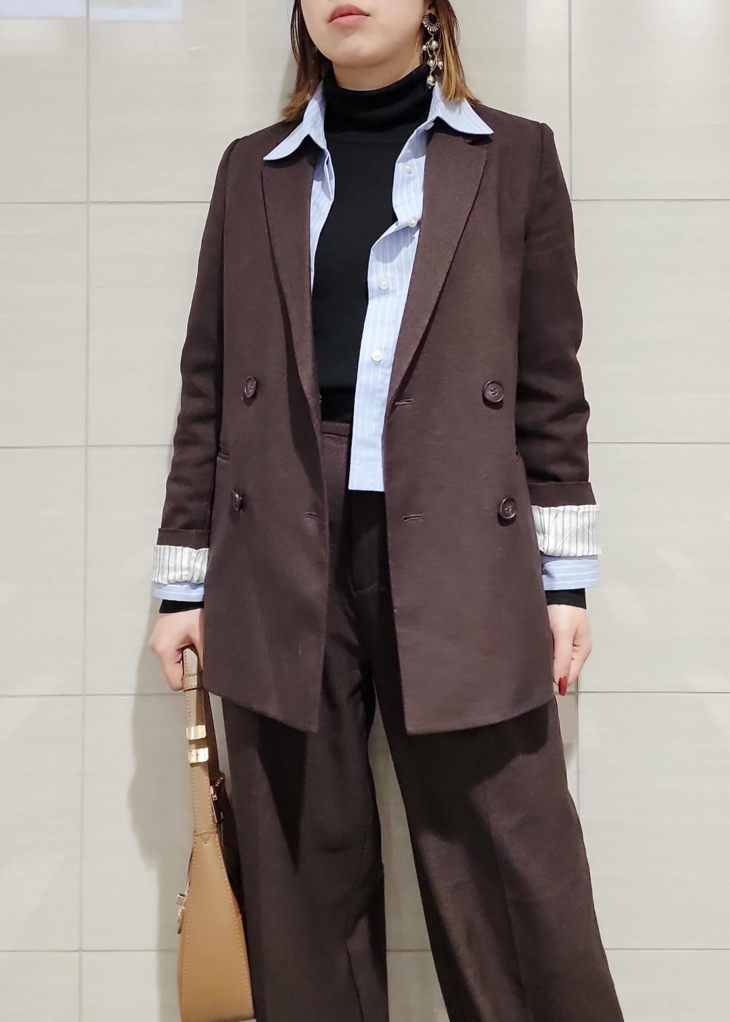 カジュアルになりすぎないようにジャケットインナーはシャツ+タートルネックのレイヤードスタイルできちんと感もプラスしました♪
