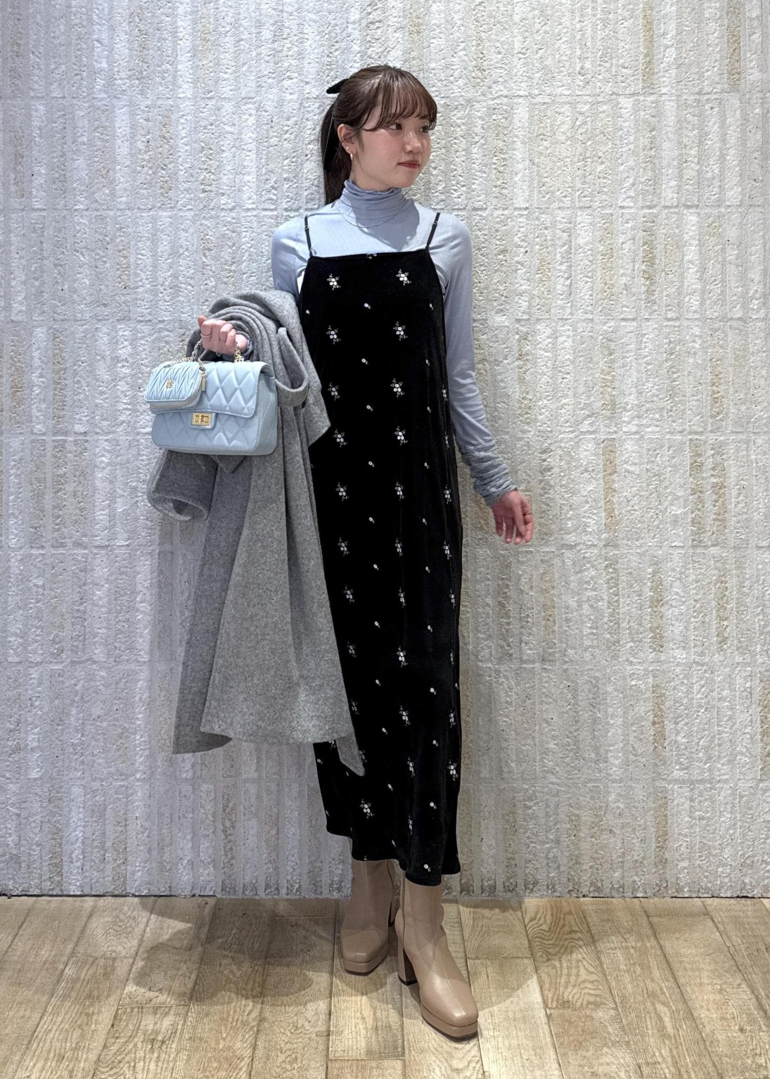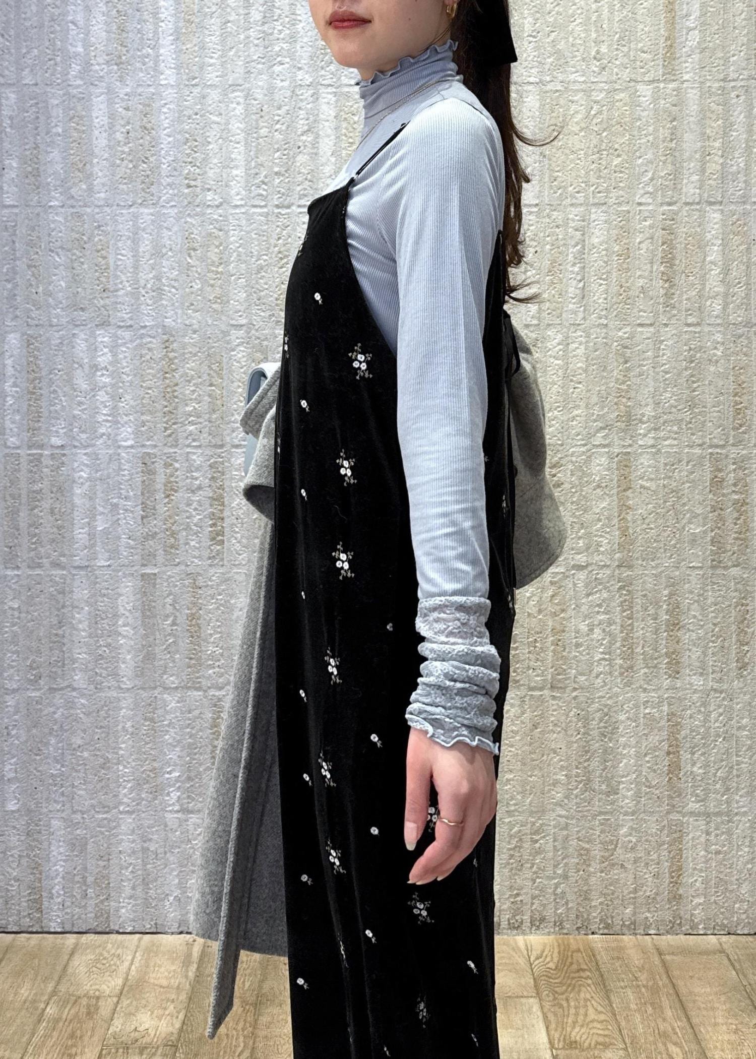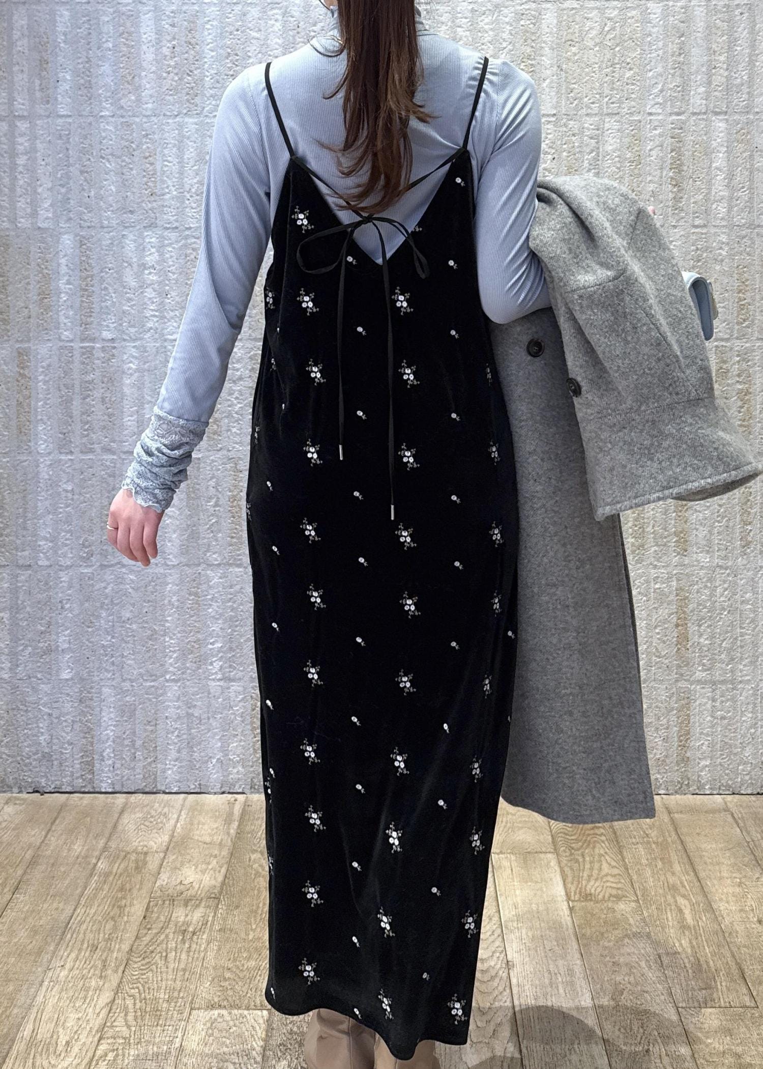 VIS刺繍アソートベロアキャミワンピース/2WAYブラック系 / F¥8,899レビュー肩紐は、後ろで結ぶタイプなので、身長に合わせて調節が可能◎