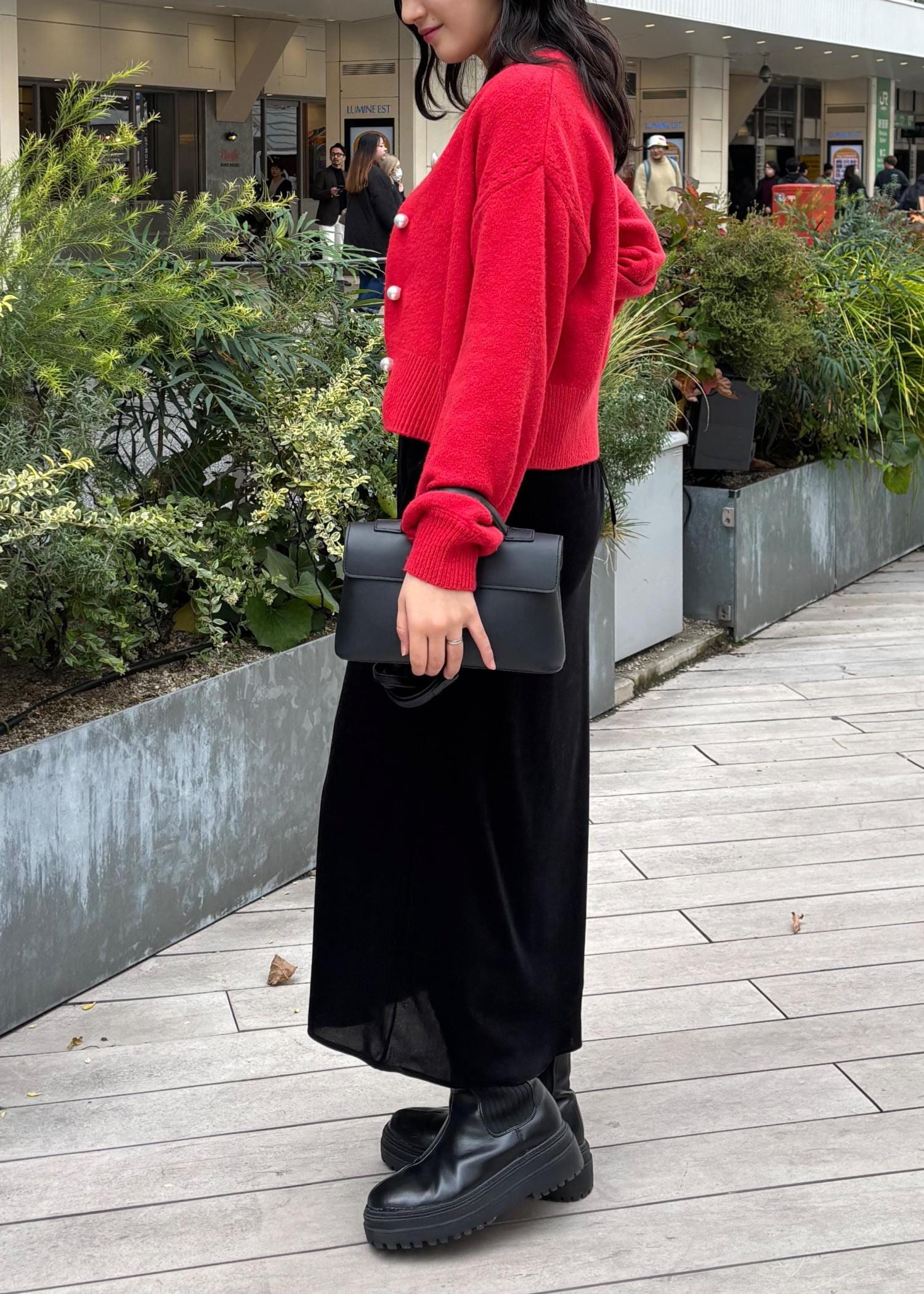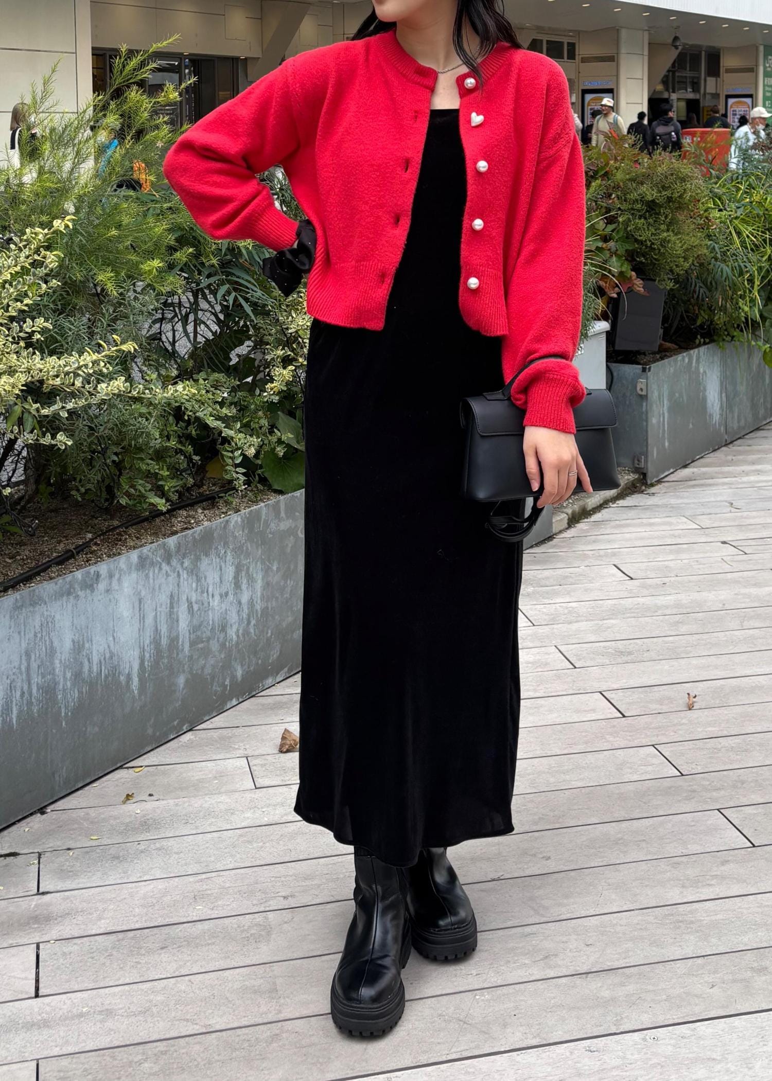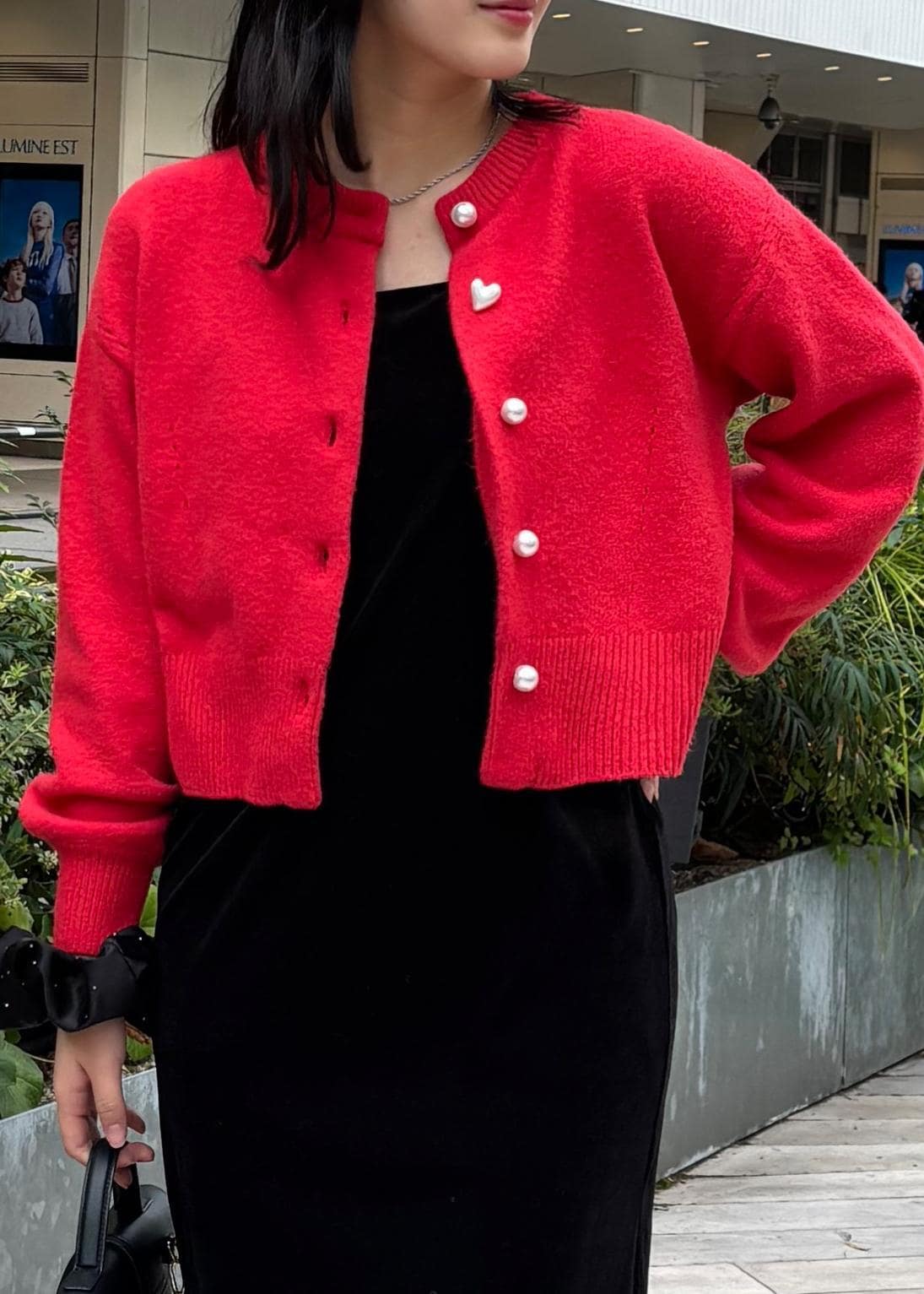 VISハートアソートパール釦ラメミックスカーディガン/イージーケア・一部WEB限定カラーレッド / F¥4,940レビューパールボタンが可愛いカーディガン!