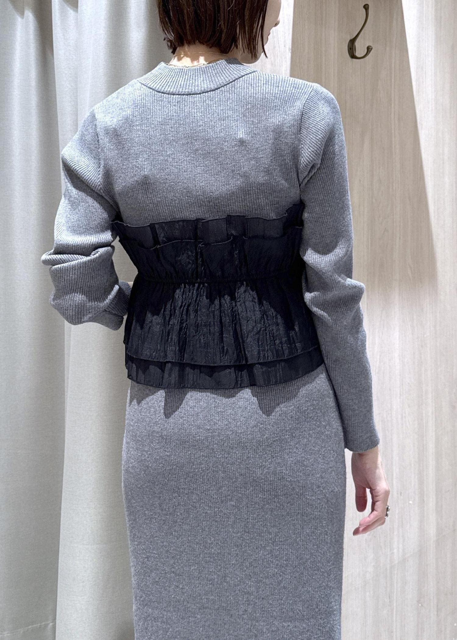 NEW! 予約VIS【美得】ビスチェドッキングニットプルオーバー/セットアップ対応チャコール / F¥5,489レビュー身長166センチでお尻掛かる長さでした。