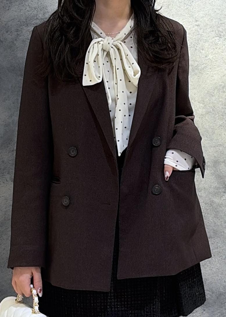 VIS【美easy】ウーリッシュダブルブレストテーラードジャケット【セットアップ対応/洗える】ダークブラウン / M¥8,899レビュー身長160cmでMサイズ着用。