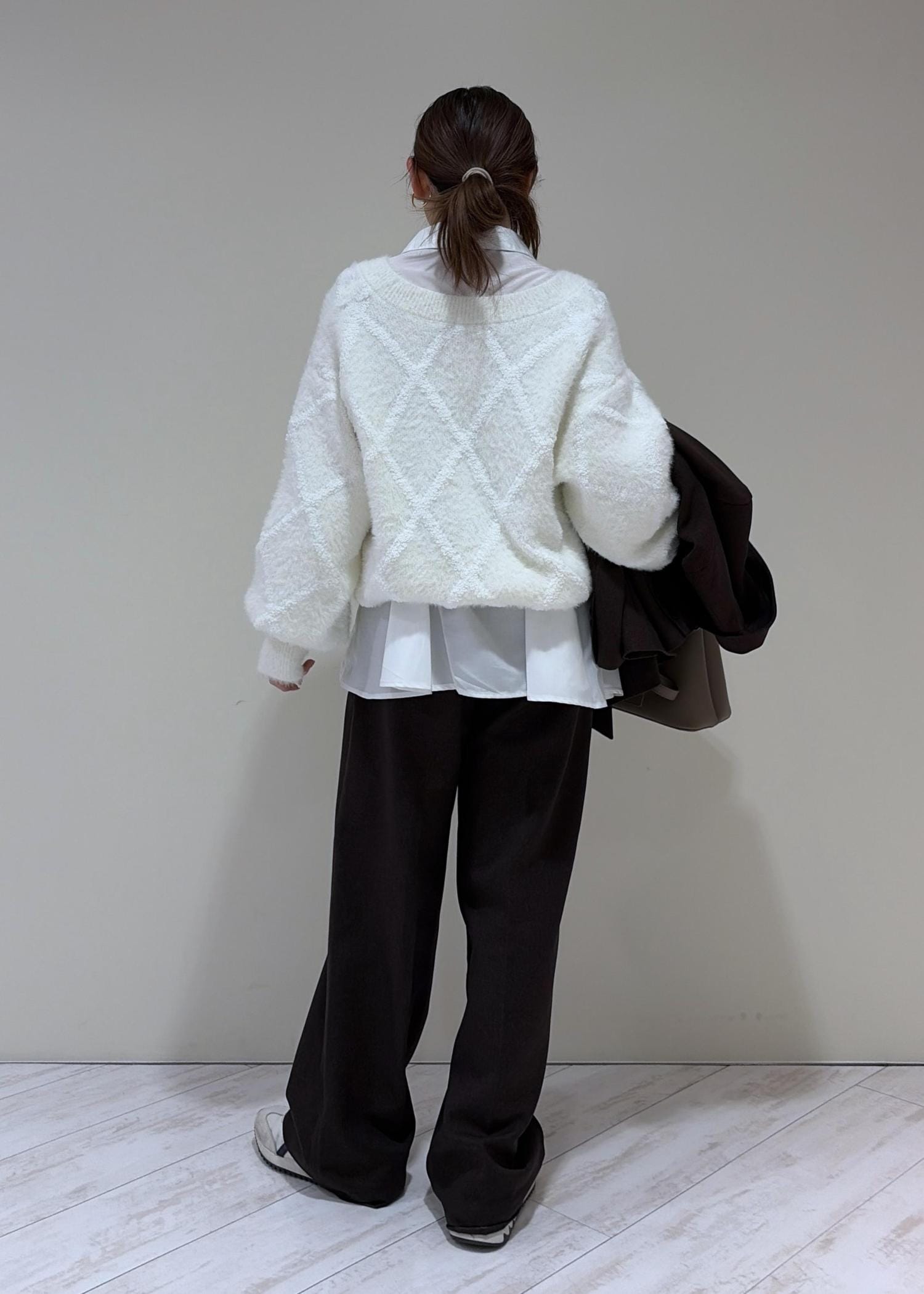 VISアーガイルフェザーニット/2WAY・イージーケアオフホワイト / F¥6,589レビューさりげない同系色のアーガイル柄が上品見えで大人かわいい‼︎