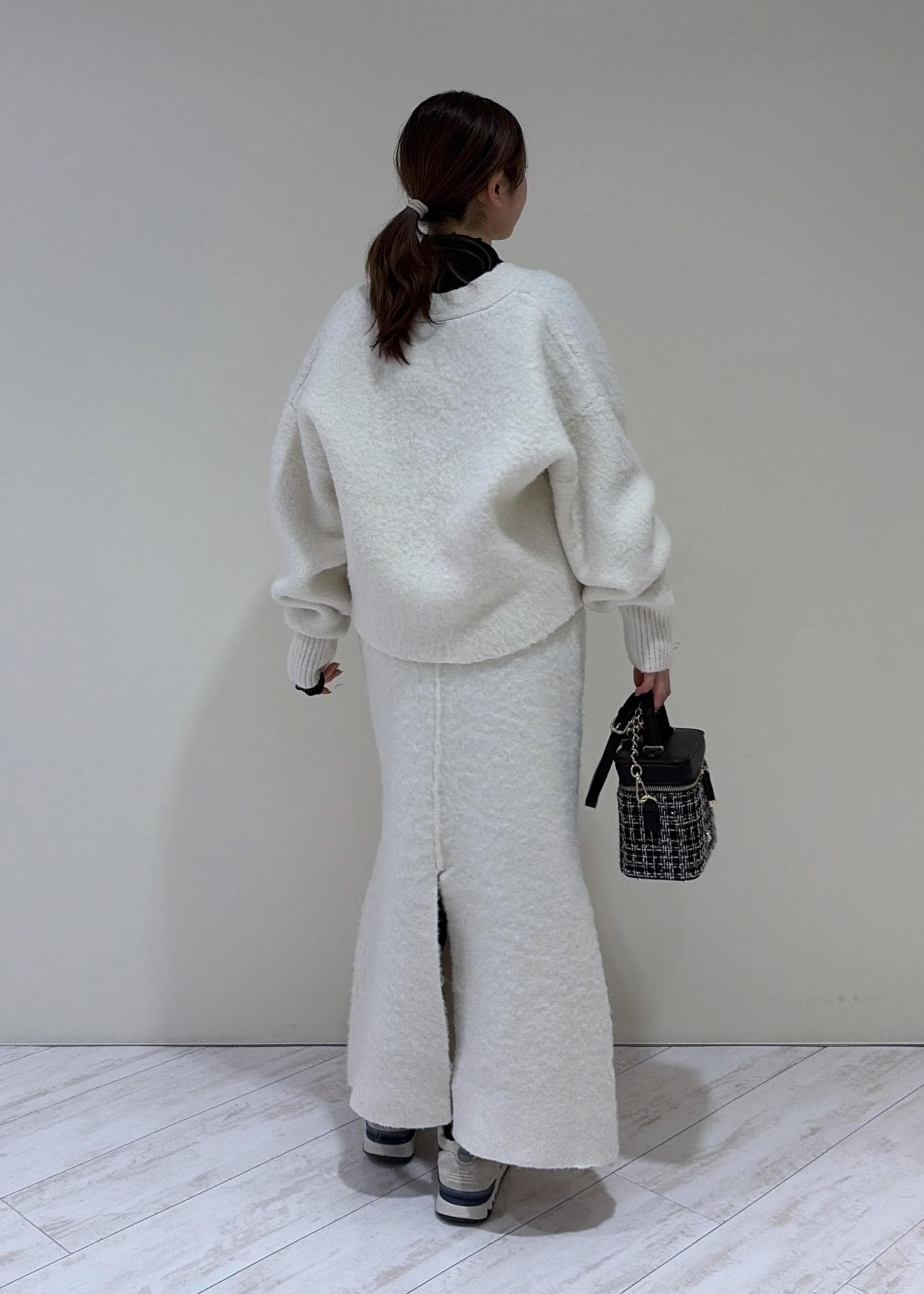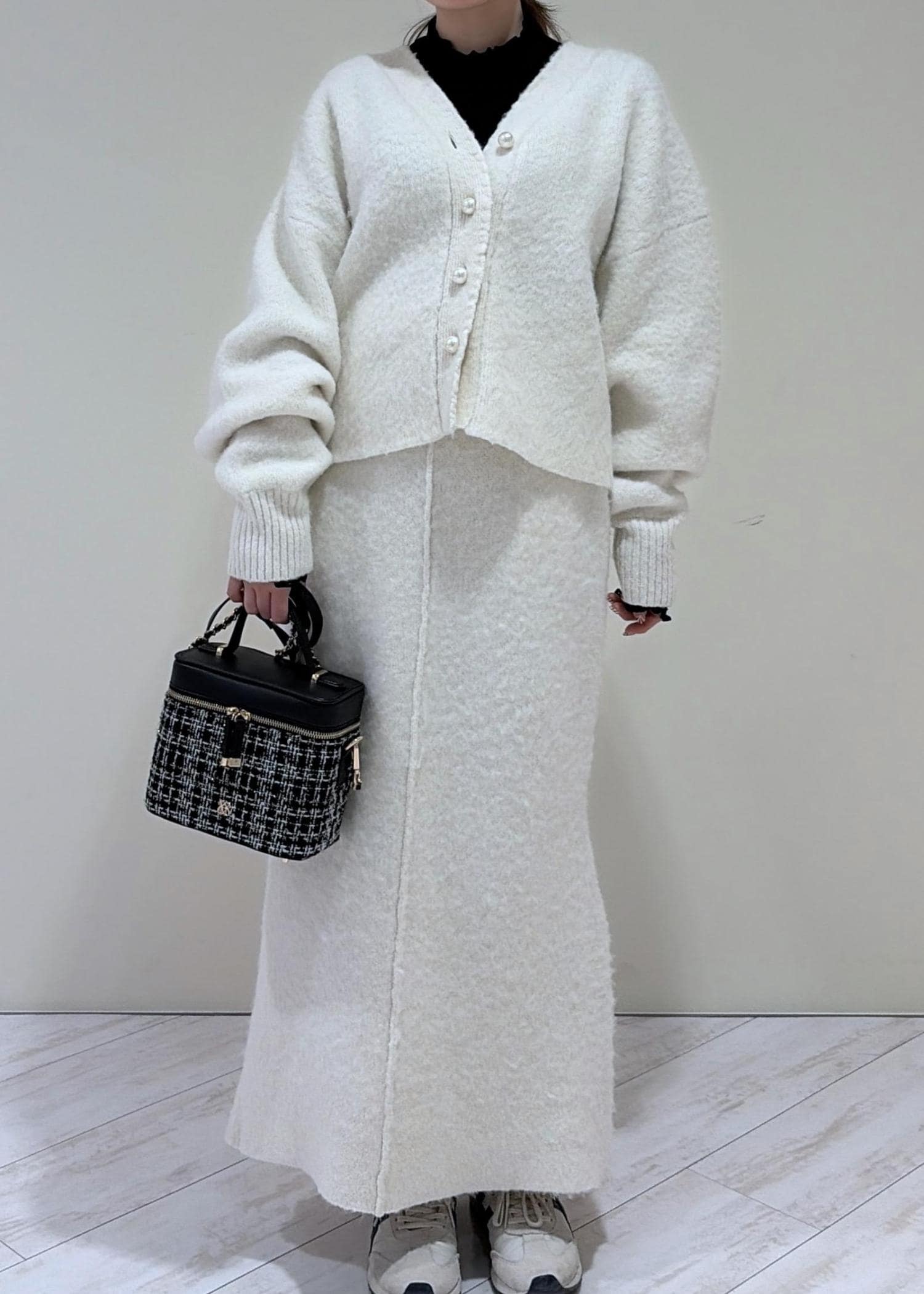VISチェックアソートシャギーニットスカート/セットアップ対応オフホワイト / F¥6,589レビュー身長150センチ、くるぶし隠れる丈感