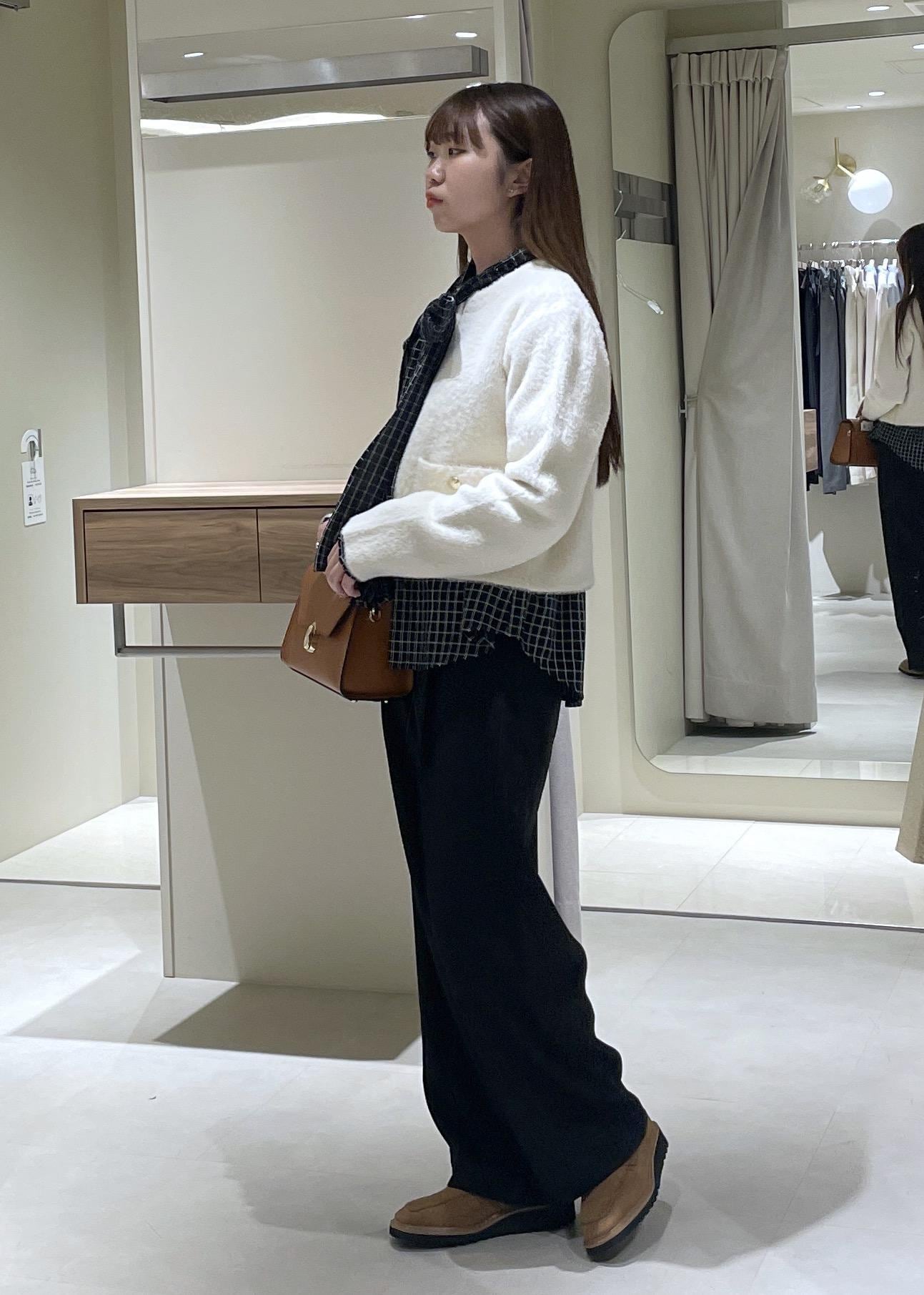 中にタートルネックなどを合わせていただけると、冬場まで長く使っていただけます