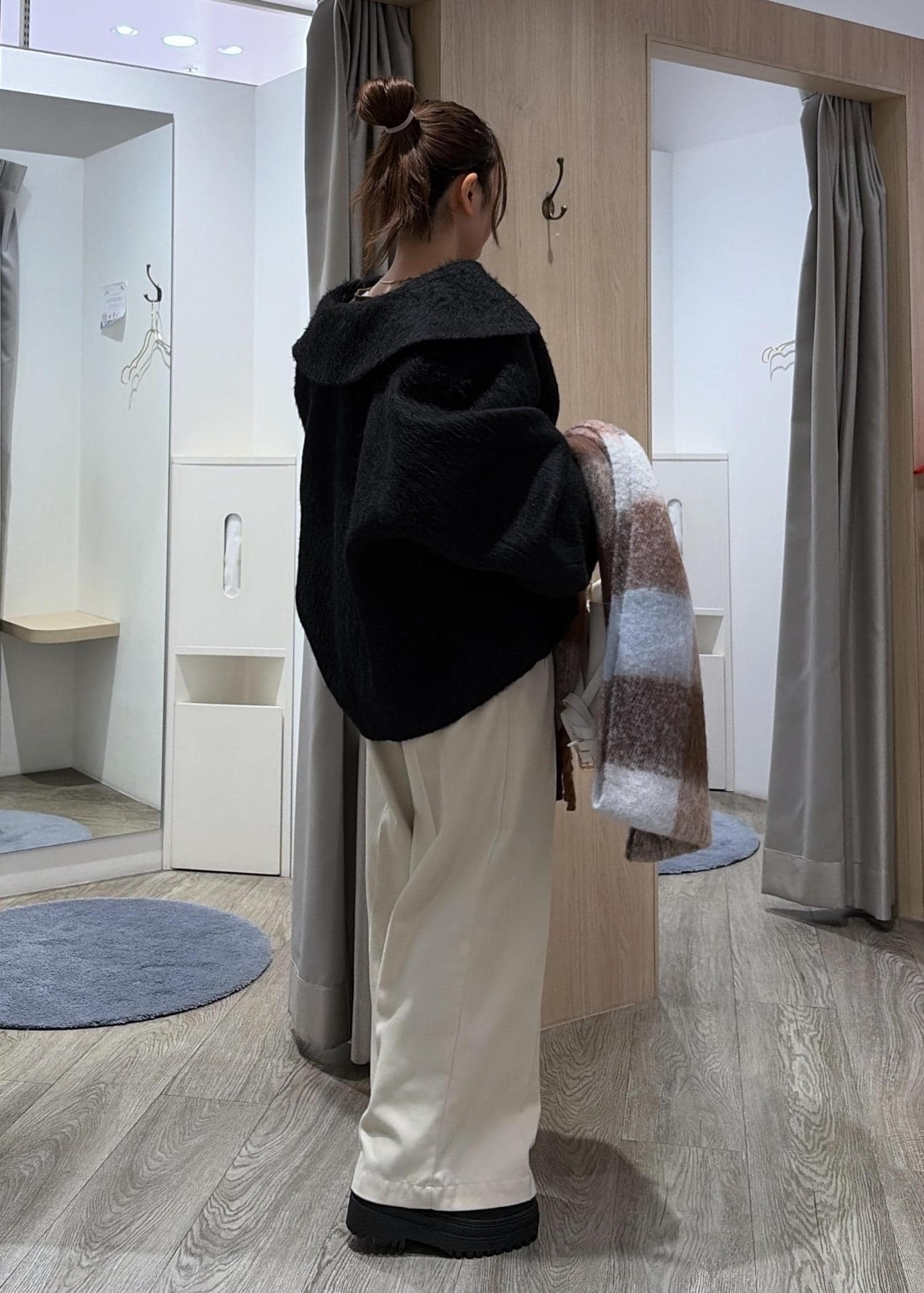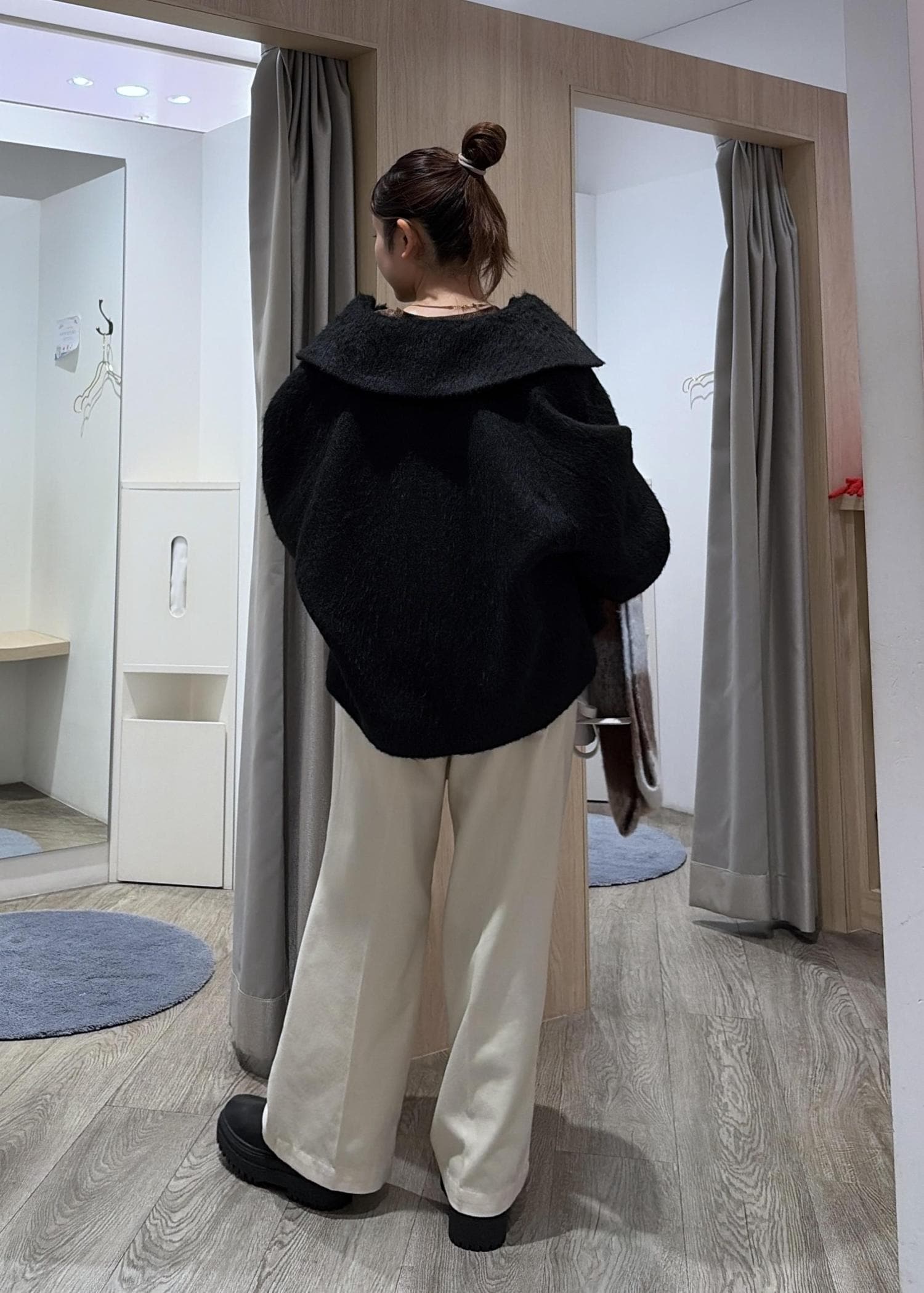 ゆったりめのお作りの為、中に着込んでもゴワつき感なく着用できました◎厚手ニット合わせ◎ -