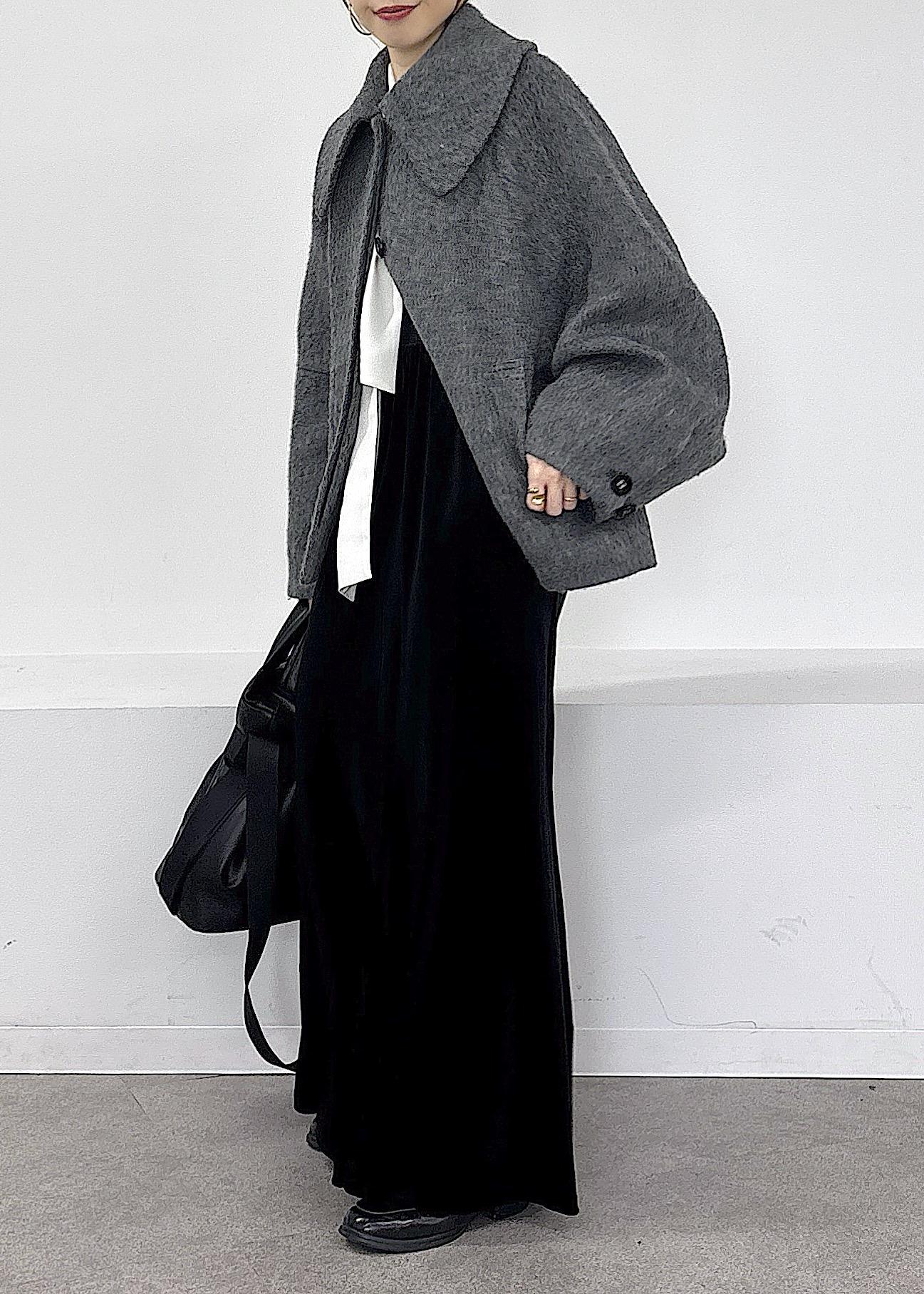 VIS【アウター総選挙1位】ビッグカラーモモンガシャギーショートコートグレー / M¥10,989レビュービックカラーが大人可愛いショートコート♪ゆったりデザインで、大きめな襟が小顔効果抜群です。モモンガシルエットでたぷっとした袖周りが女性らしい。お尻がちょうど隠れる長さなのも安心◎季節を感じるウール混のふわっとした生地で、暖かくて着やすいです。全体的にゆったりめ、着丈は腰、お尻が隠れる長さでした。