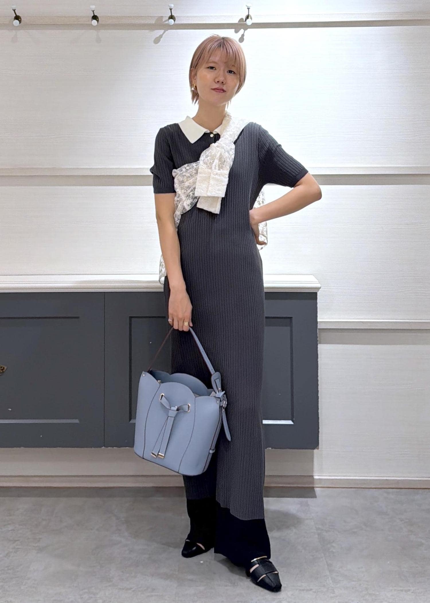 小物もキレイめなもので合わせてレディな印象に◎