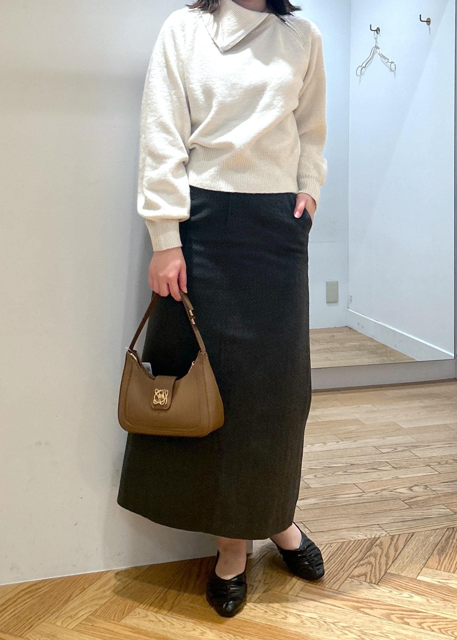 ジップニットをタイトスカート合わせで綺麗めに。