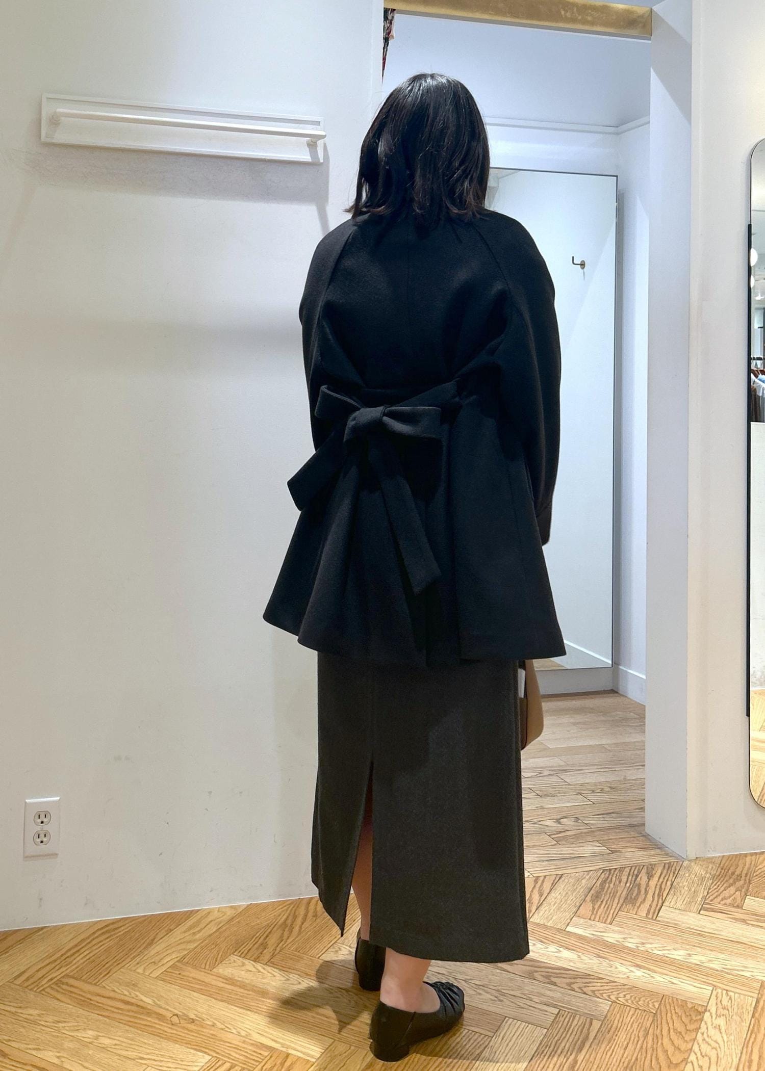 ウエストマークをするとよりふんわり広がったシルエットになりますよ!!
