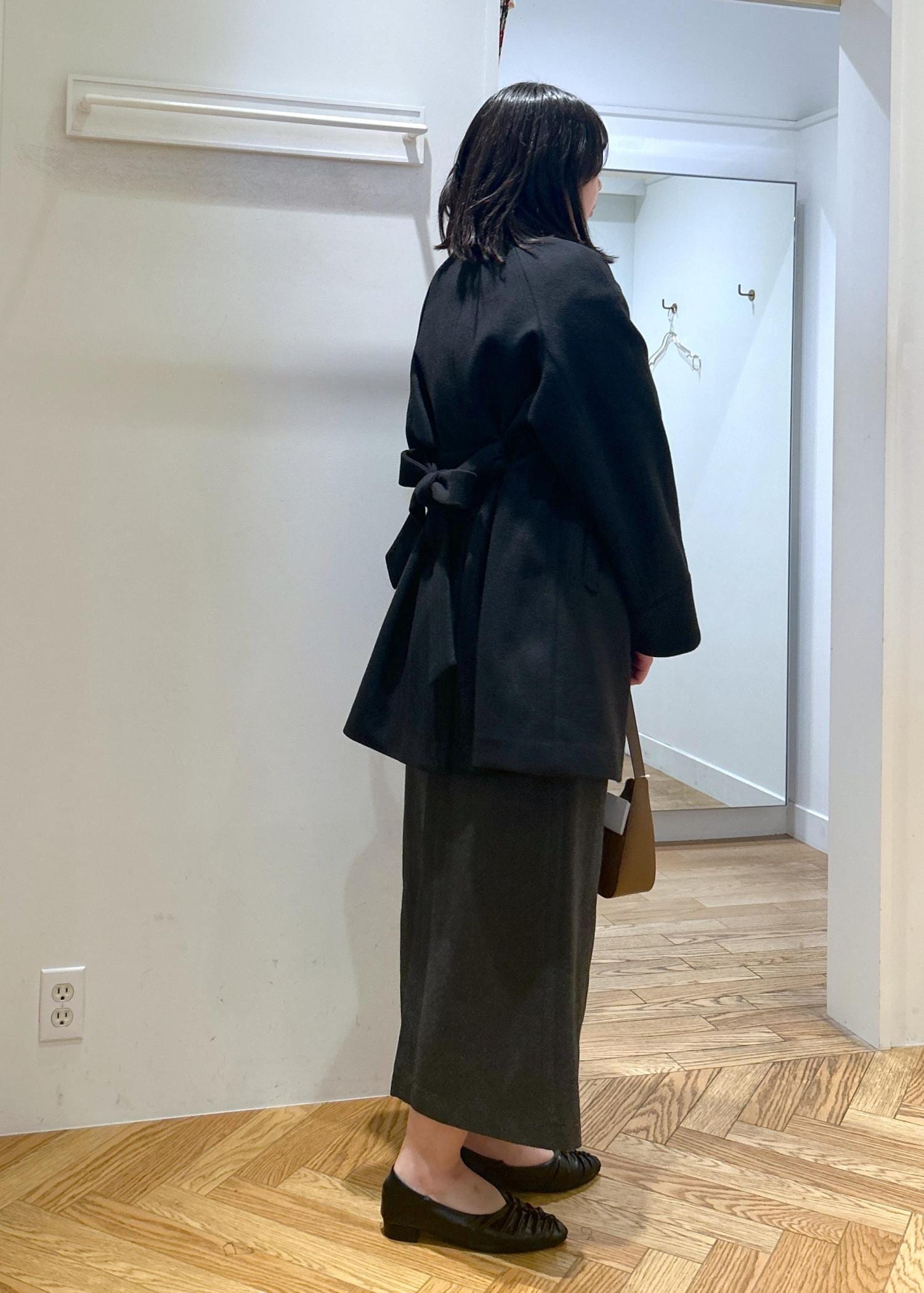 ブラックのアウター合わせなので着膨れ感なくスッキリして見えますよ!