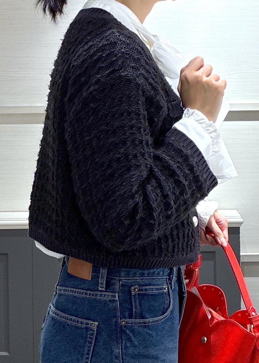 VISファンシーツイードメタルボタンカーディガンネイビー系 / F¥5,271レビュー身長168センチでおへそにかかるくらいの短丈で着用出来ます!