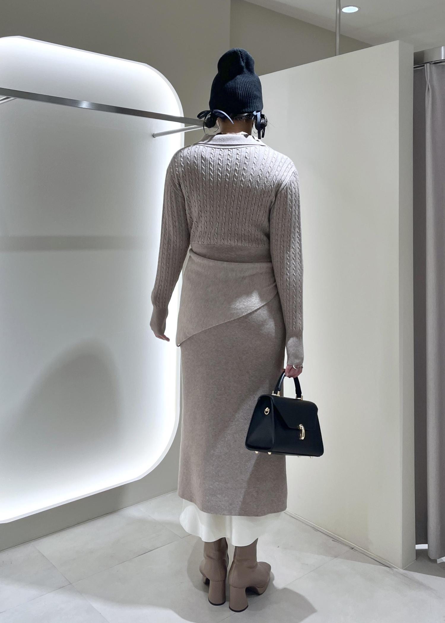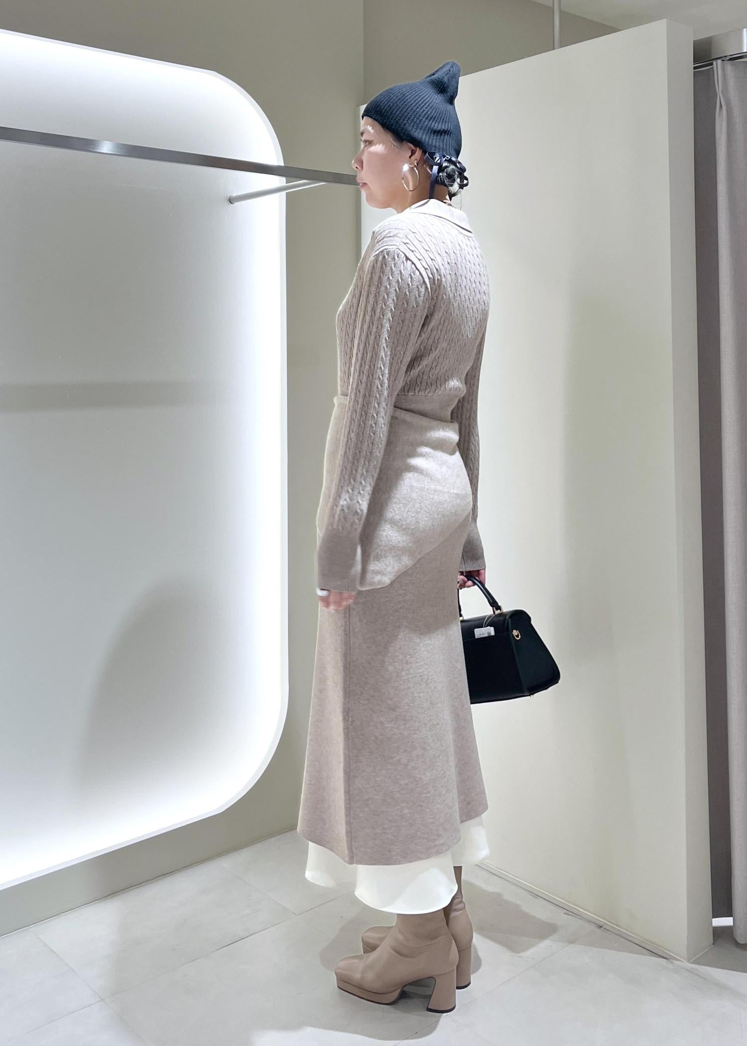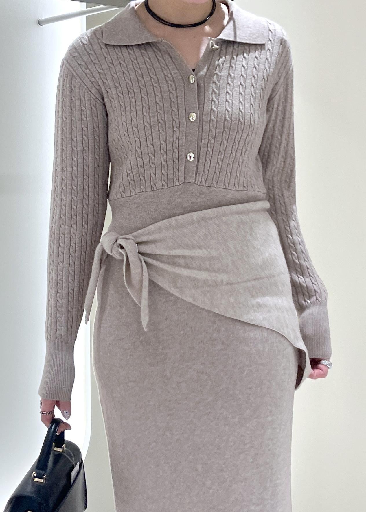 VISポロケーブルモチモチニットワンピースベージュ系 / F¥8,899レビューもちもちとした柔らかい素材感と程よい肉厚感で着やすいです!首元もボタンで開けられるので好みに合わせて抜け感を出すのも◎