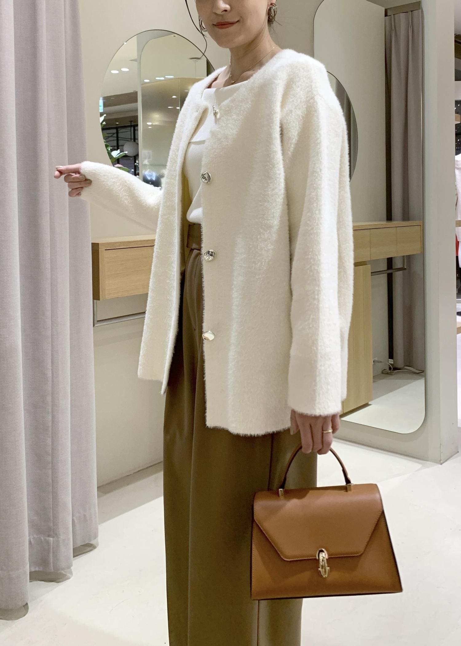 VIS接結メタルボタンミニフェザーニットコートオフホワイト / F¥7,999レビューとても柔らかくモチモチしていて、肌触りが気持ちいいです。伸縮性もあり、尚且つポケット付きなのもありがたい!カーディガンだと薄いし、コートだとまだ早い時期にちょうど間の肉厚感なので使いやすいですよ!