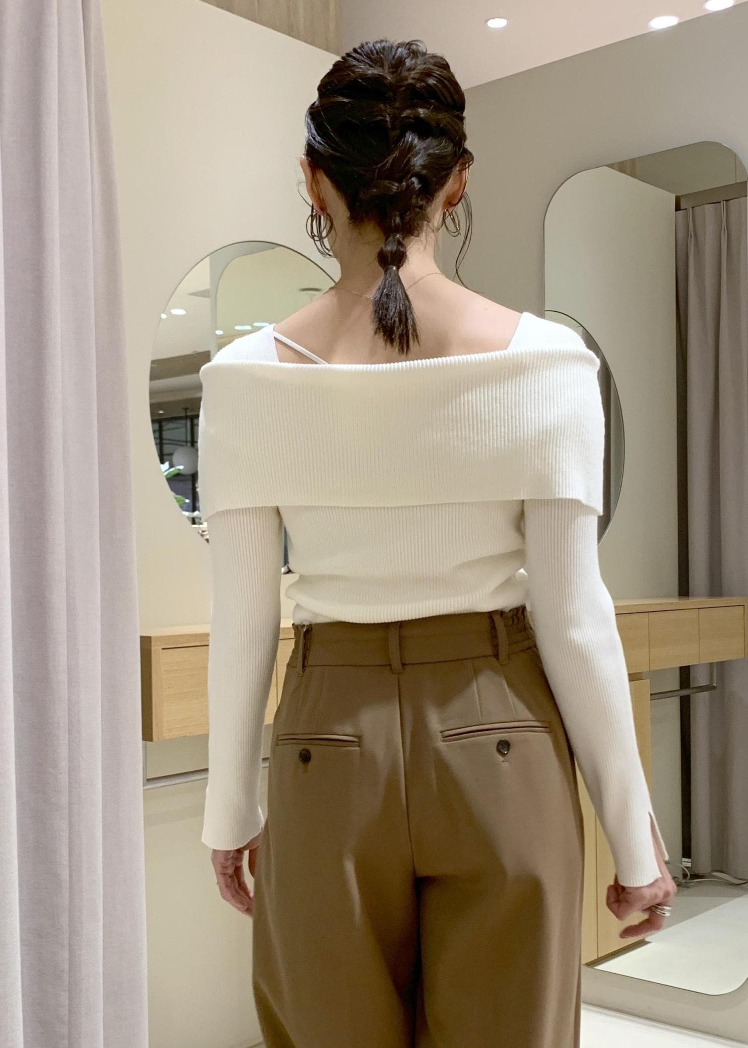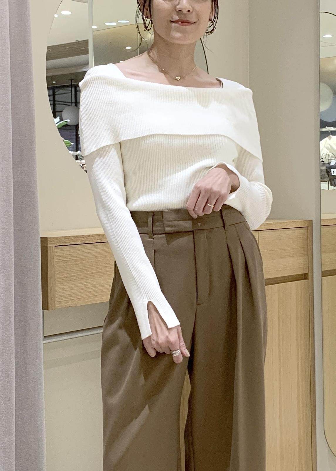 NEW!VIS【美得】オフショルダーモチモチリブニット/好評につき再入荷オフホワイト / F¥5,489レビューニットでもチクチクする感じはなく、滑らかでした。