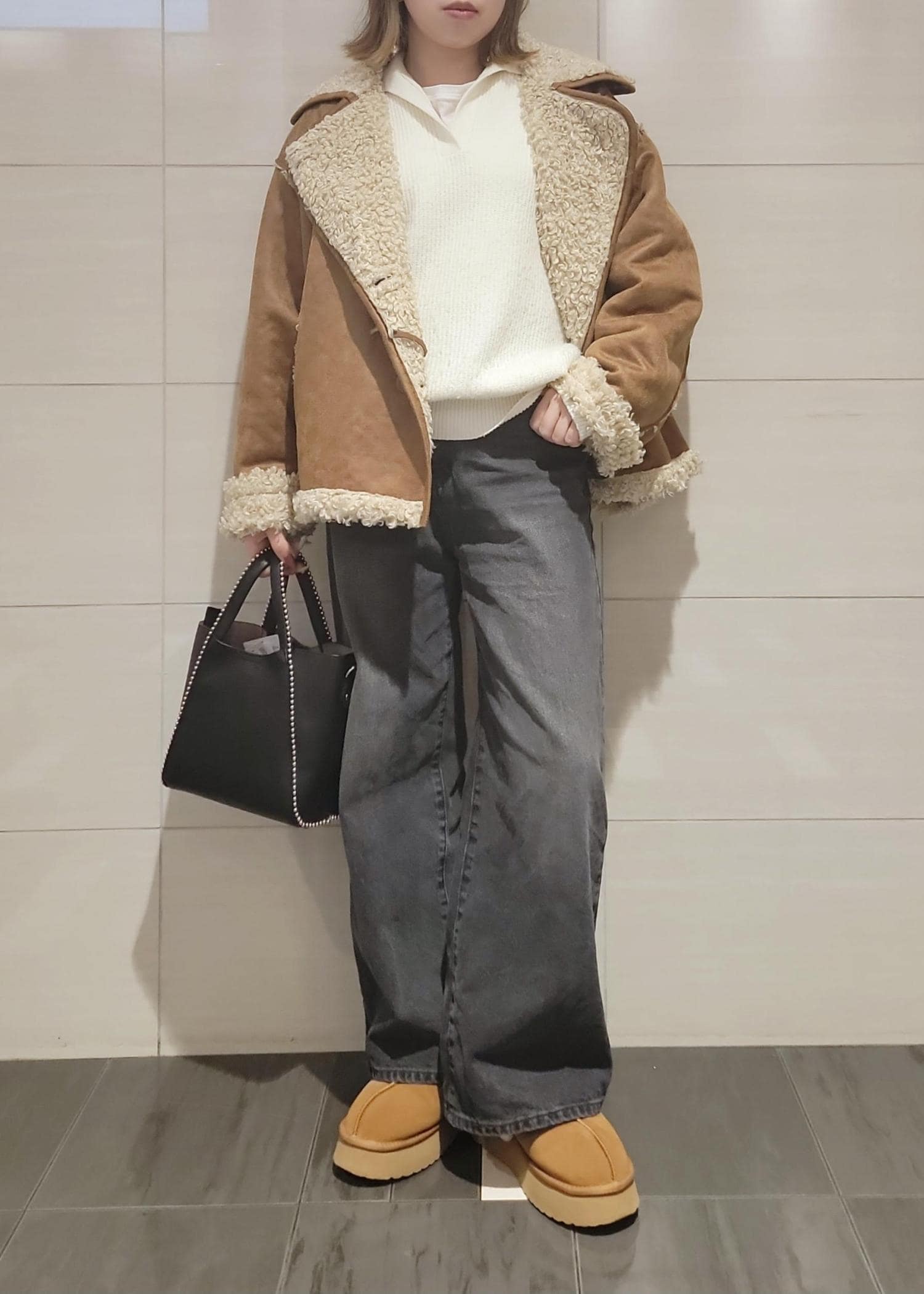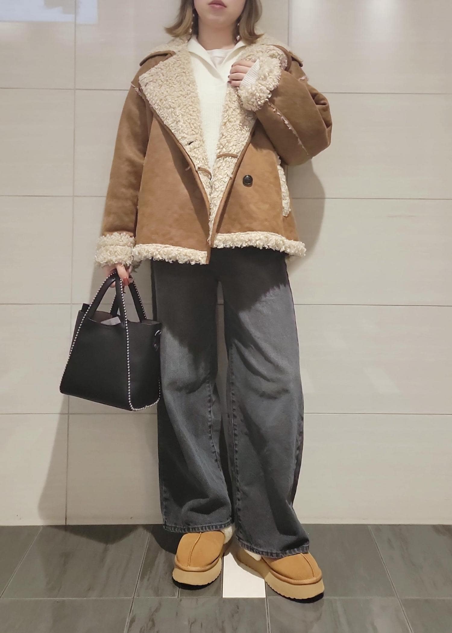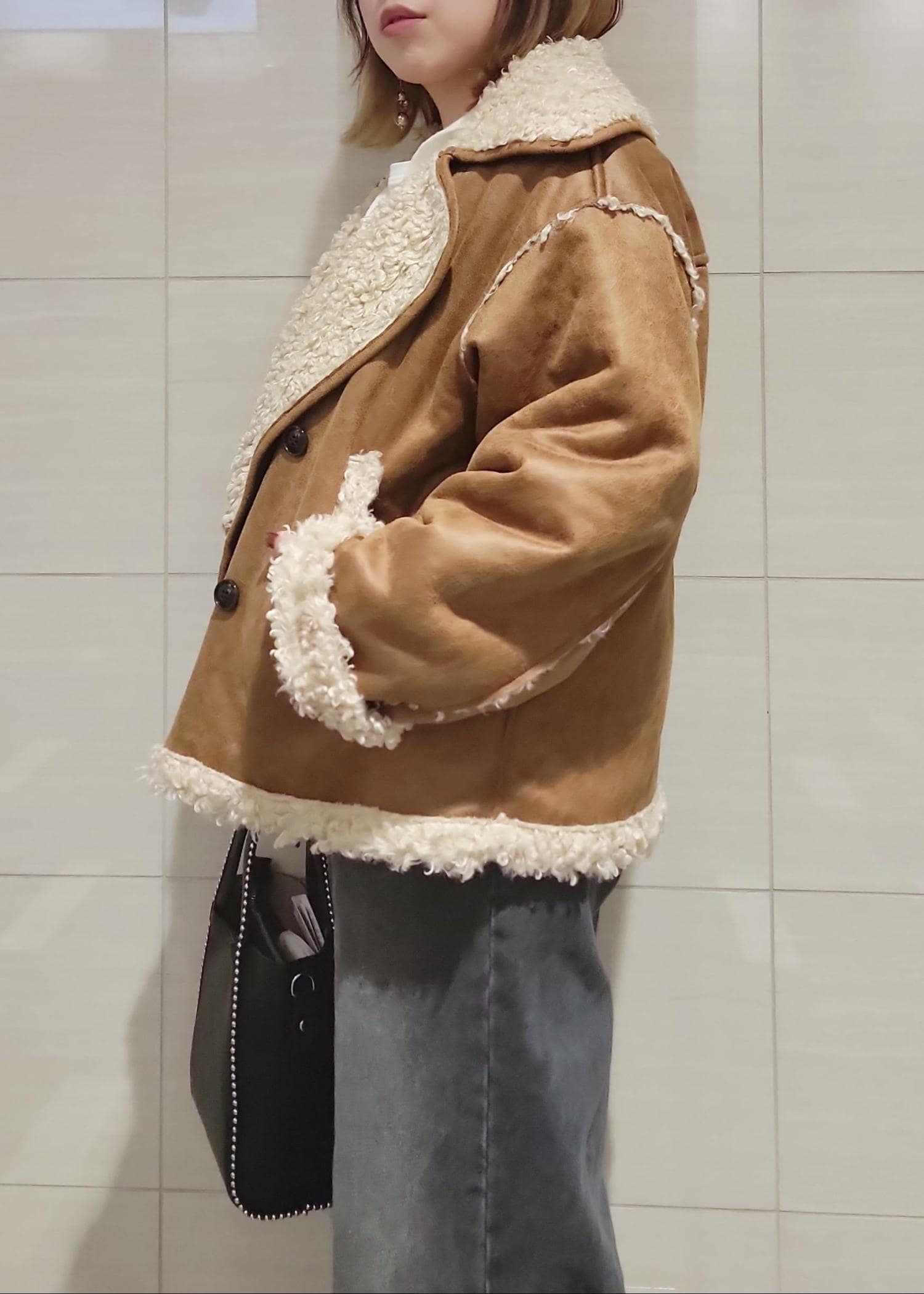VISフェイクムートンジャケットキャメル / F¥11,264レビューオーバーサイズなので、ゆったり感がありニットの上にも羽織りやすい大きさになっています。