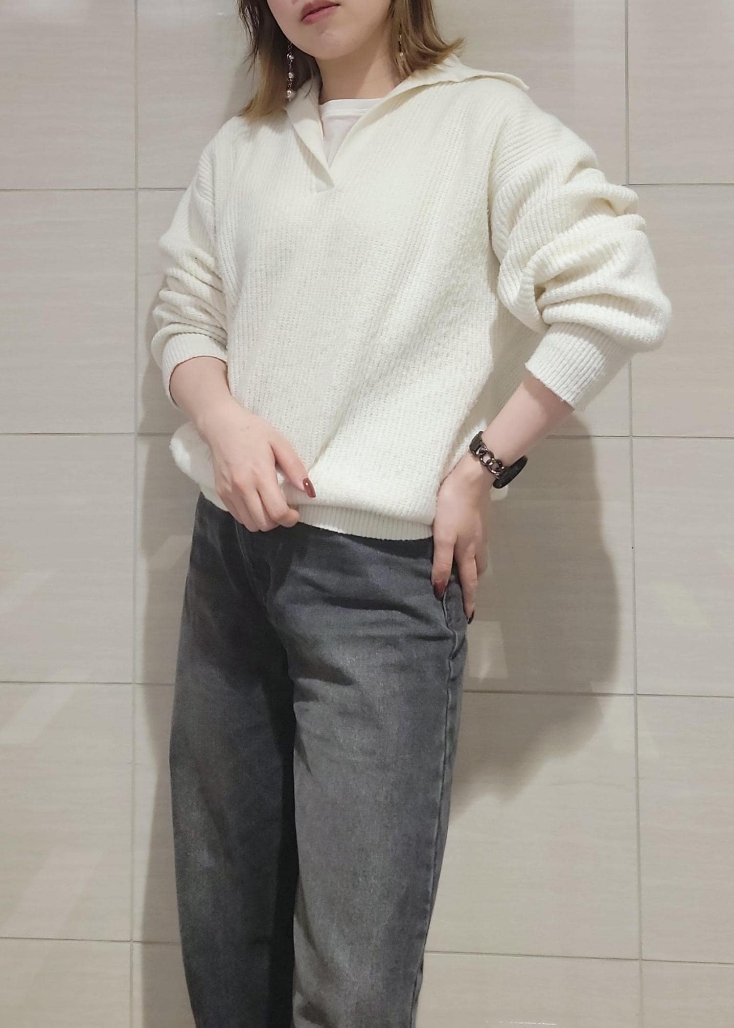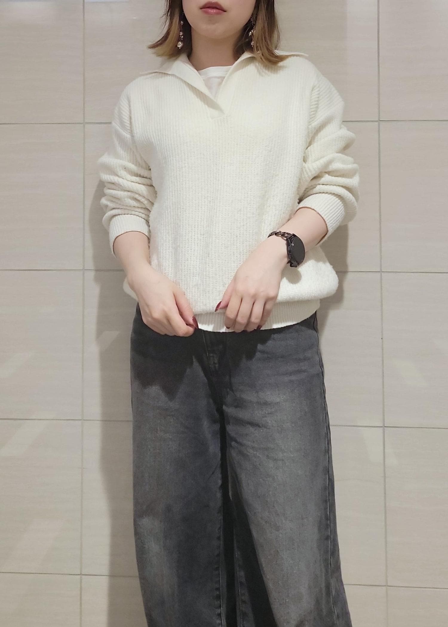 ROPÉ PICNICスキッパーポロニットプルオーバー/イージーケアオフホワイト / F¥3,842レビュースキッパーデザインでネックラインがすっきりと見え、ネックのレイヤードスタイルもおすすめです!