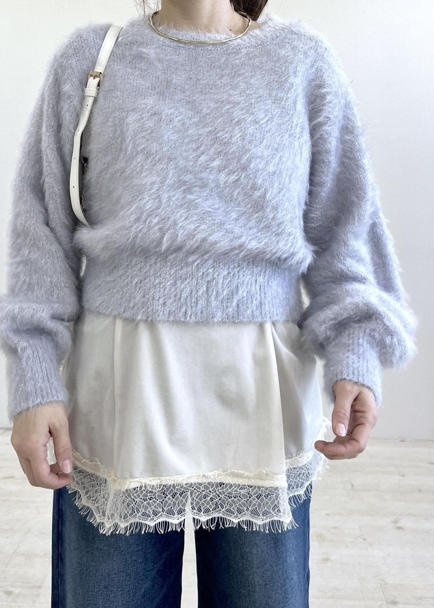VISメタルシャギーネコヤーンニット/静電気防止サックス / F¥4,391レビューふわふわモチモチの肌触りがとっても気持ちいいニット。目立ちすぎないキラキラシャギーで大人なイメージにお召しいただけます。これからの時期にピッタリな素材感です!ゆったりサイズではありますが、大きすぎることなく着丈も腰に少しかかるくらいの丈なのでコンパクトに着られました。ゆるっと袖の見た目も◎