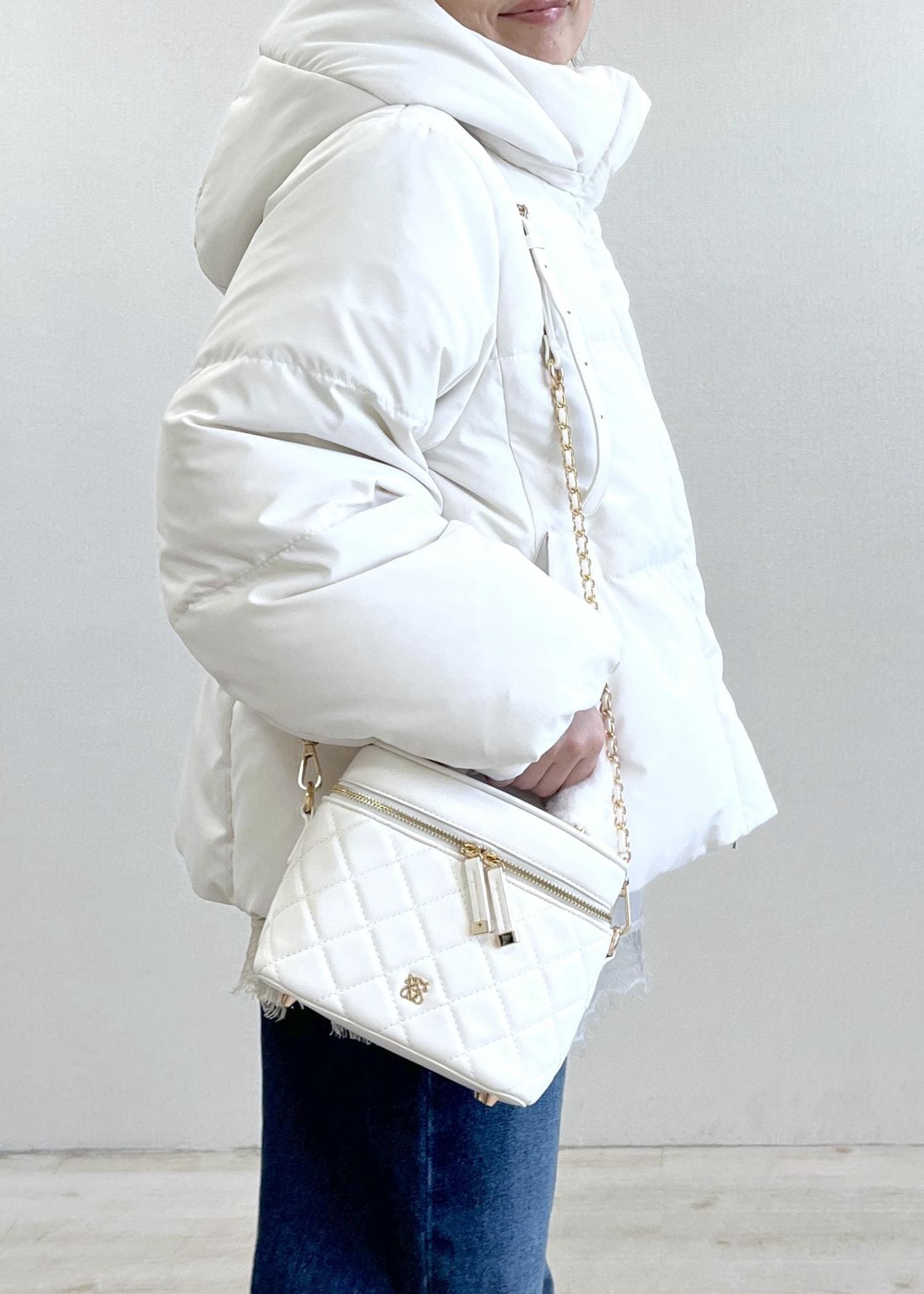 VISファーハンドルキルティング&ツイードバニティバッグ/2WAYオフホワイト / F¥7,909レビューハンドル部分のファーがファスナーで取り外しができるので、コーディネートによって変化を楽しめるバッグです。コンパクトサイズなので、持つだけで女子力UP。ミニ財布やポーチ、携帯など必要なアイテムは入れられるサイズ感。手持ちにもショルダーにもなります。
