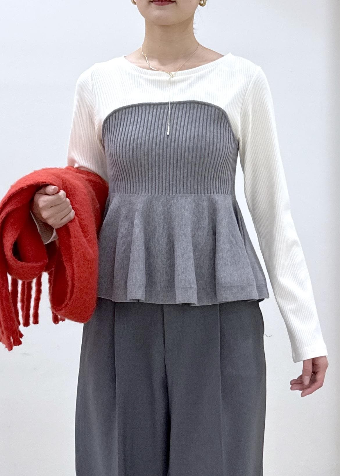 VISペプラムニットドッキングプルオーバーグレー / F¥5,929レビュー程よく体にフィットするペプラムシルエット。