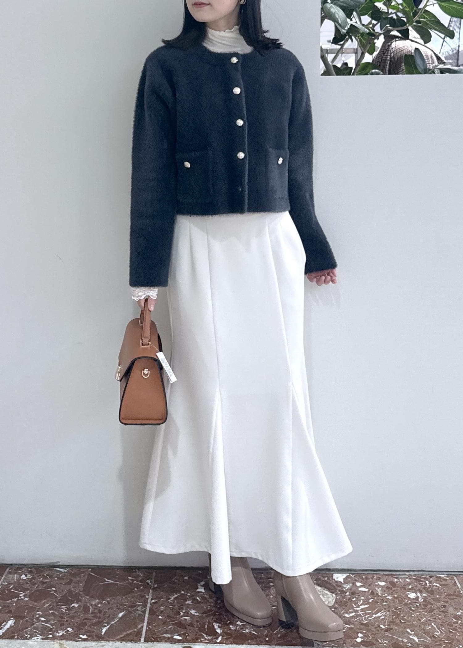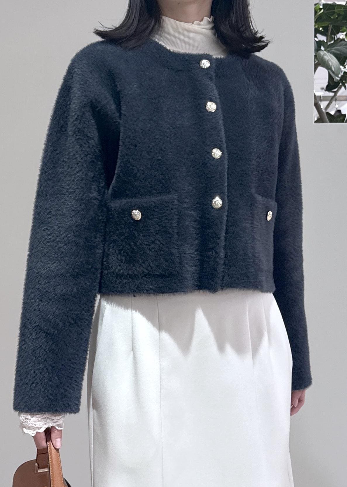 VIS接結ミニフェザーニットジャケットカーディガン/一部WEB限定カラーネイビー / F¥6,919レビュー短めの毛足でモチモチした素材。ずっと触っていたくなります♡