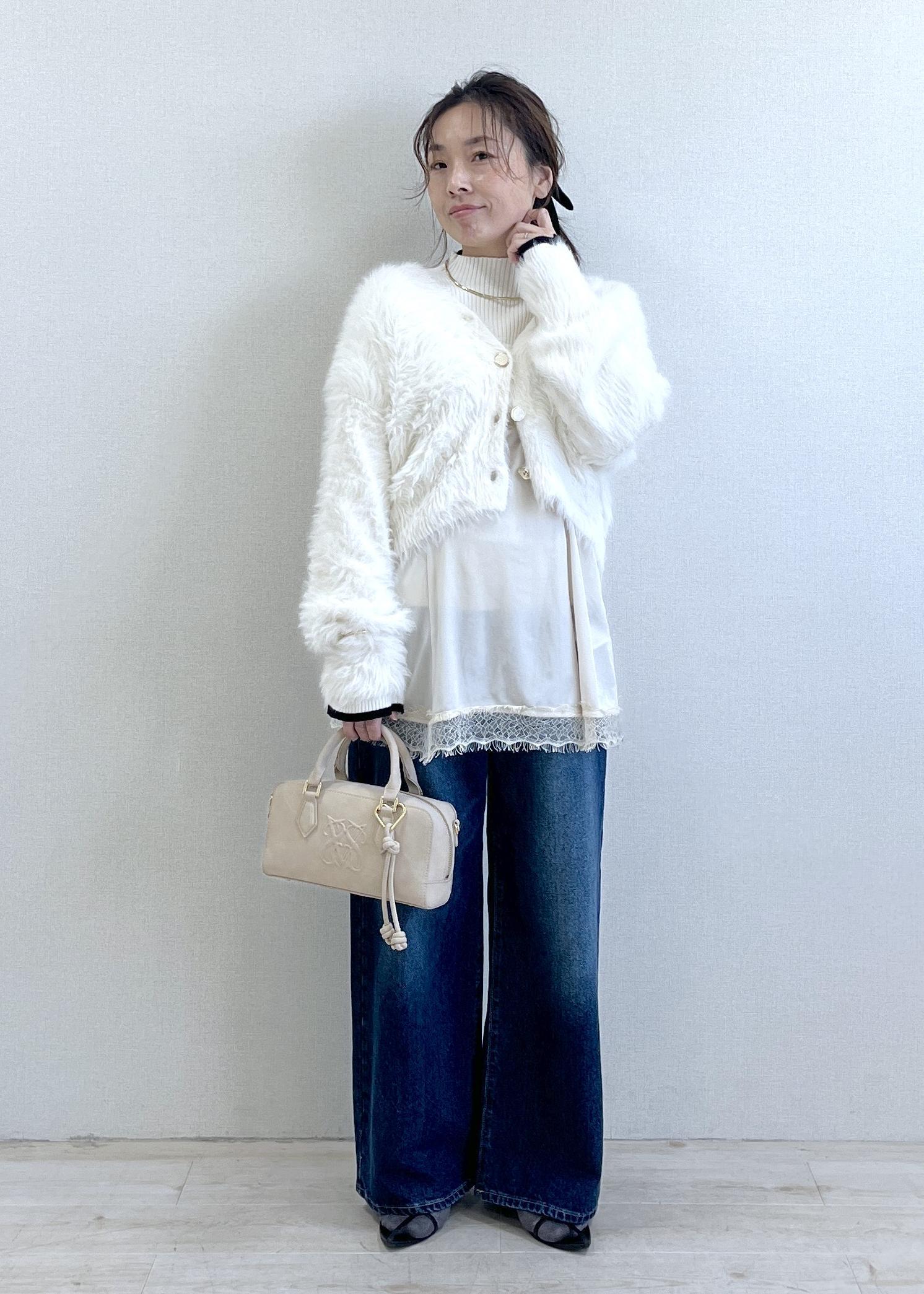 袖のレースがかわいく、スウェットや、ニットの下から出すことで、コーデのポイントになります。 -