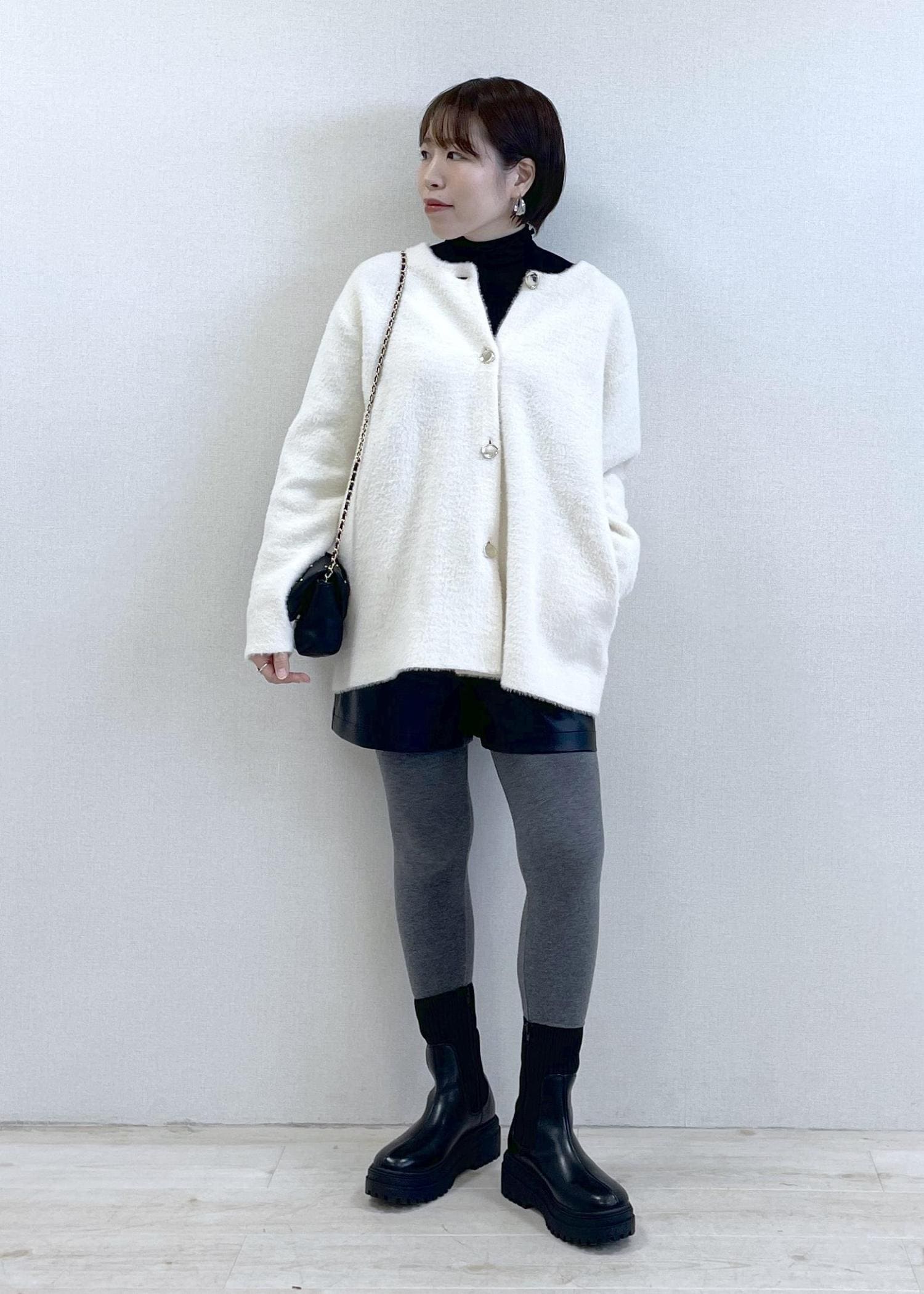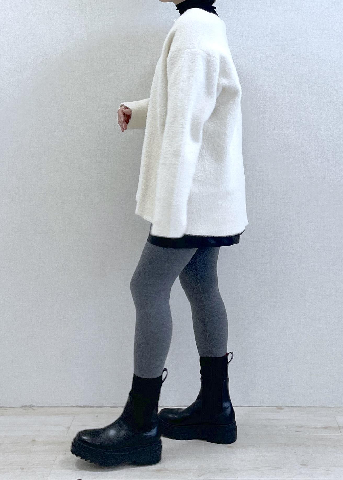 足がスラっと細く長く見え、ショート丈のボトムとも相性いいです。