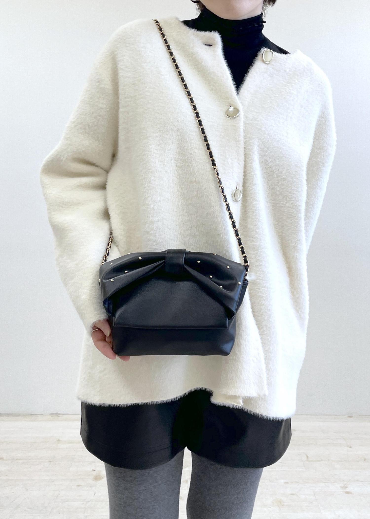 VISリボンハンドルチェーンショルダーバッグ/2WAYブラック / F¥5,929レビュー小ぶりですが、リボンのモチーフがコーデのアクセントになる、存在感あるバッグです。