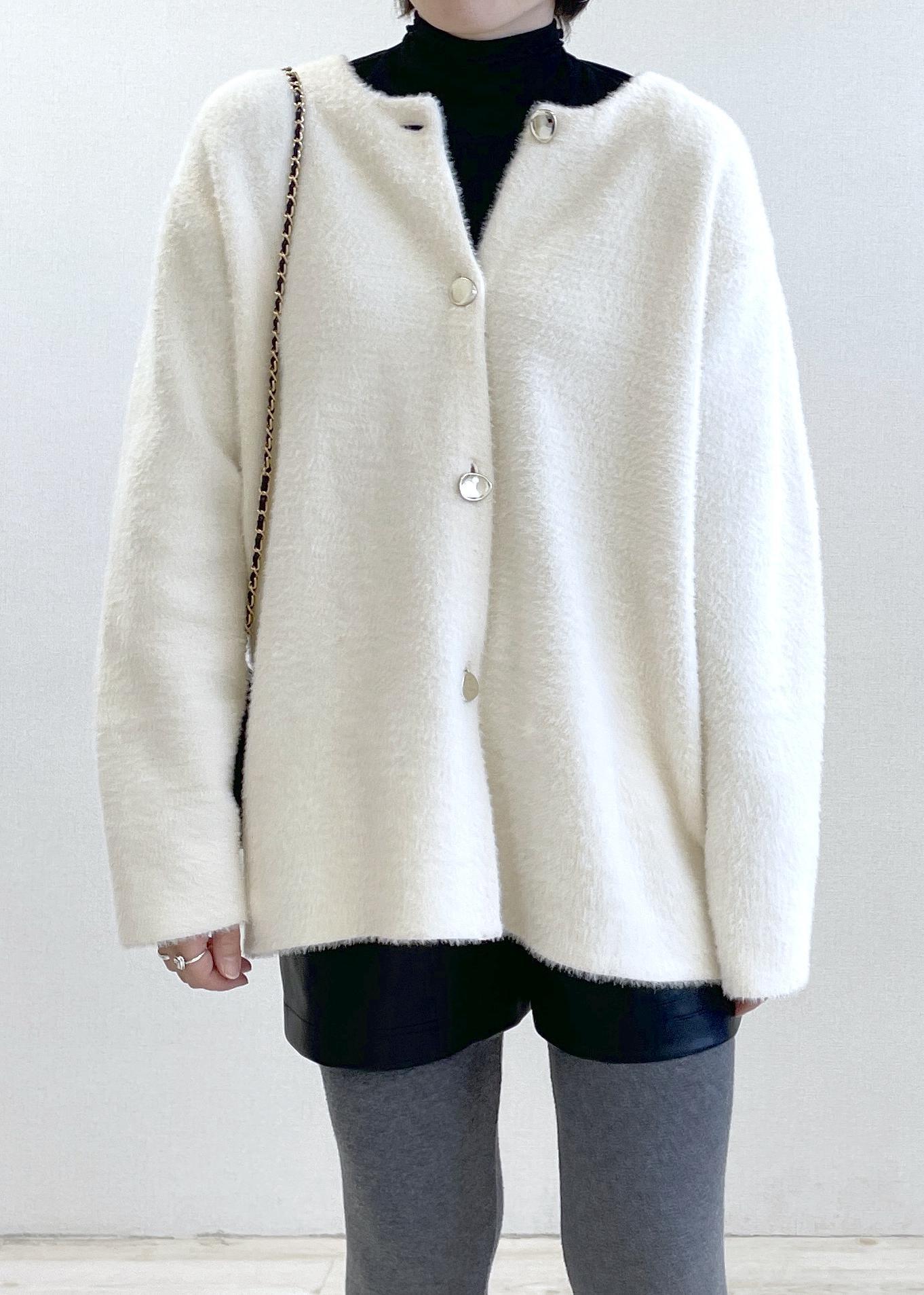 VIS接結メタルボタンミニフェザーニットコートオフホワイト / F¥7,999レビュー柔らかく、肌触りもいい生地感は、着ていてほっこりします。