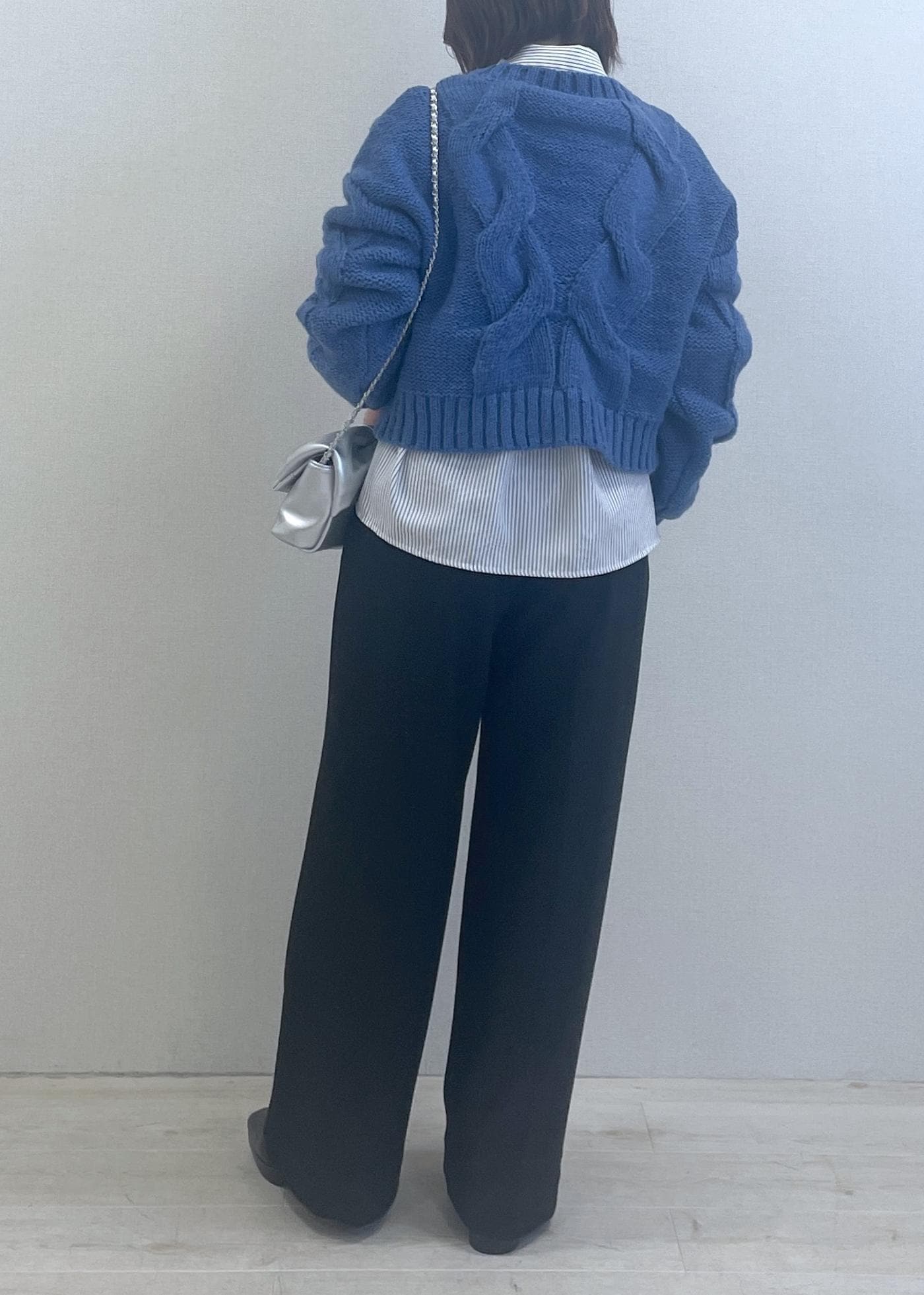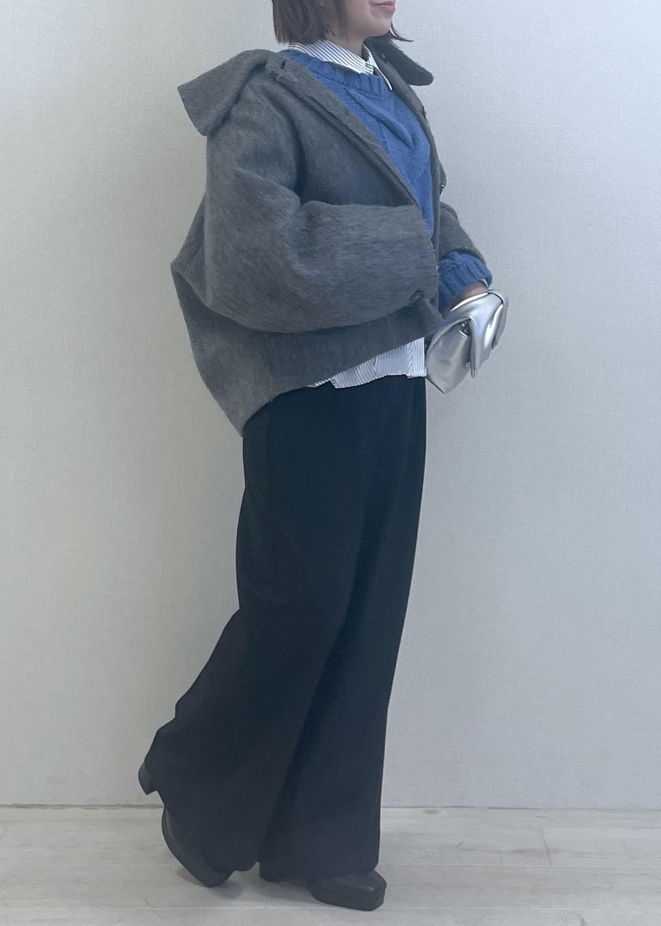 Sサイズでもゆとりがあるので、さらに厚手のニットを着ても着膨れ感なく着用できます◎