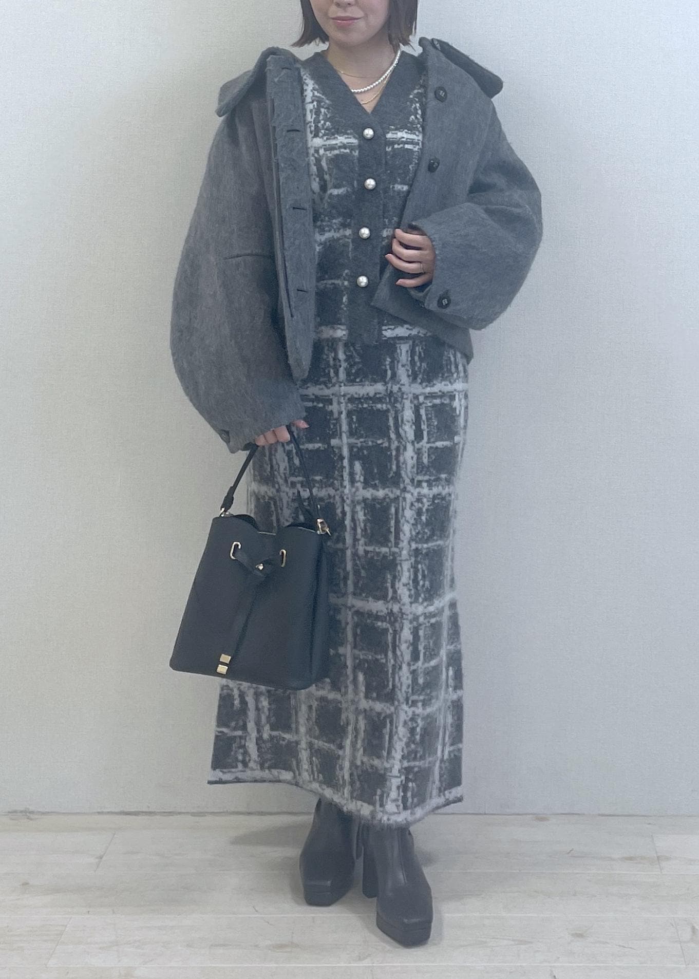 VISチェックアソートシャギーニットカーディガン/セットアップ対応グレー / F¥6,589レビュー厚みのあるニットで、一枚でも暖かいです!