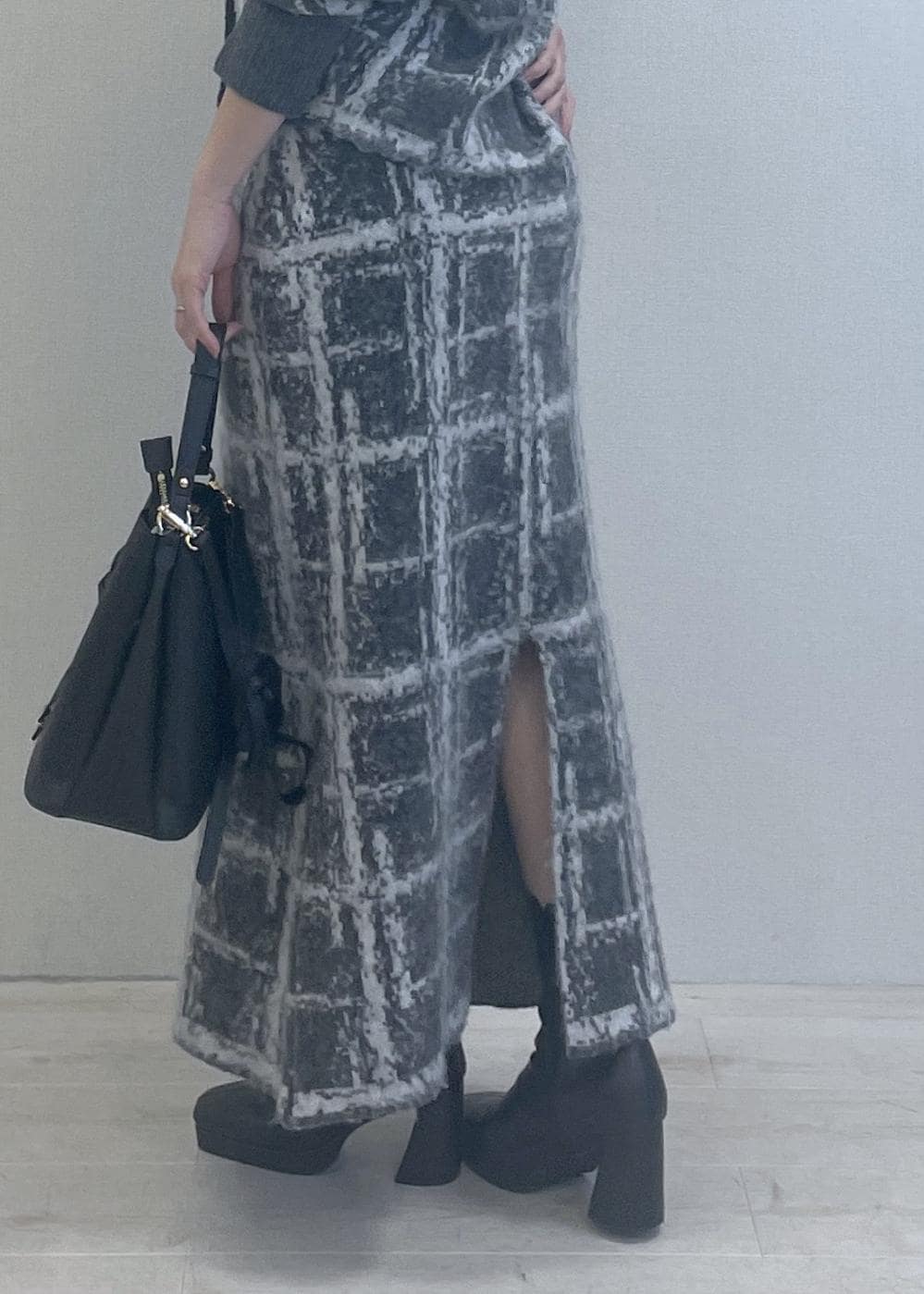 VISチェックアソートシャギーニットスカート/セットアップ対応グレー / F¥6,589レビュー厚みのあるニットです。