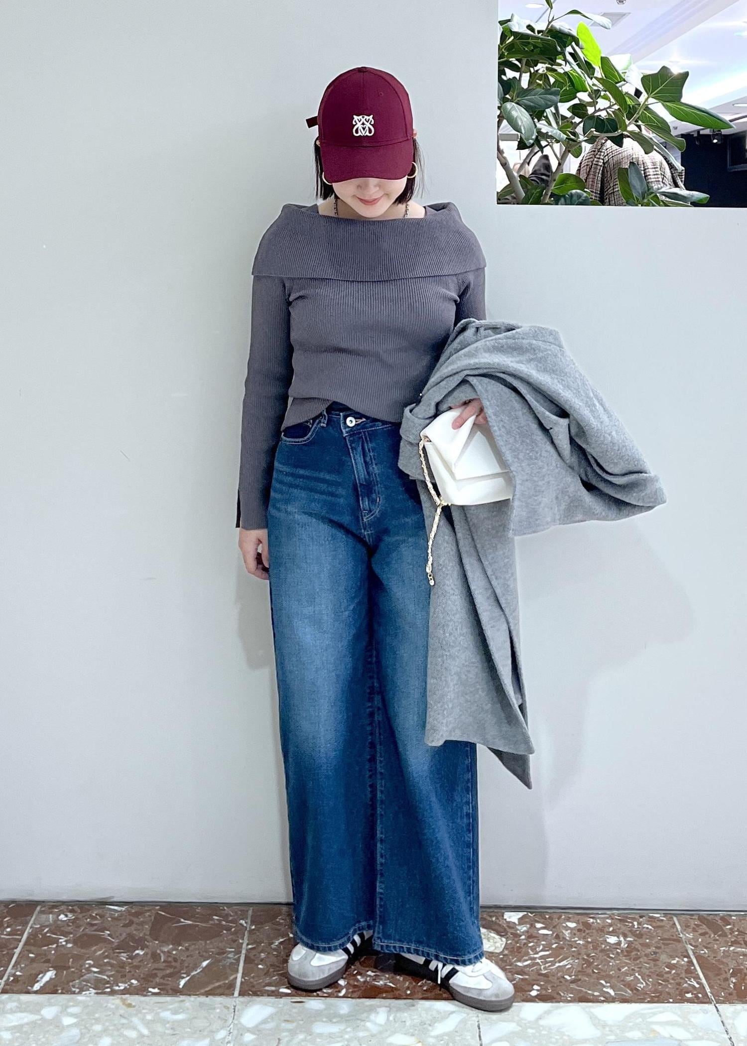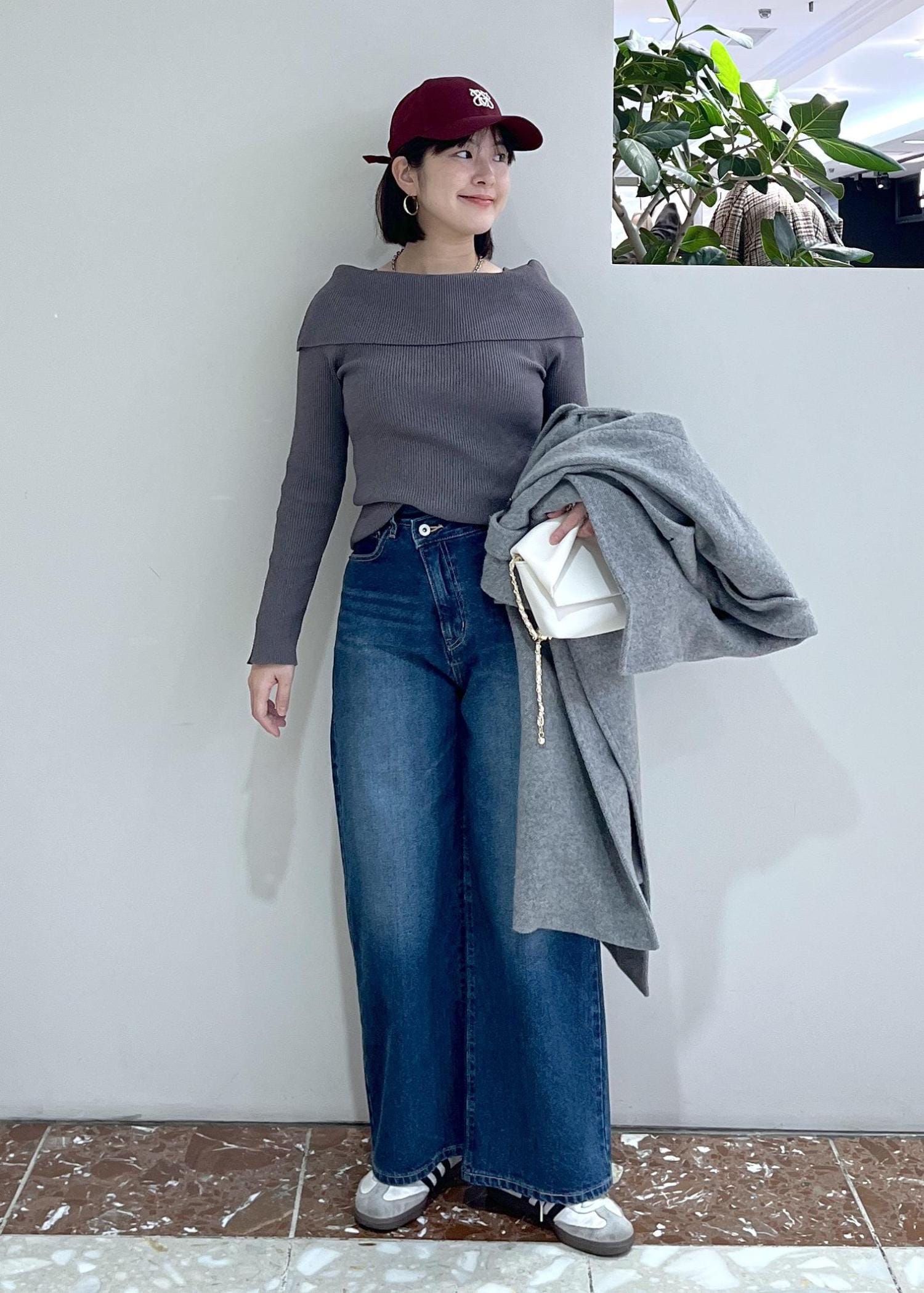 オフショルのデザインが二の腕周りをカバーしてくれるので上半身もすっきり見えます! -