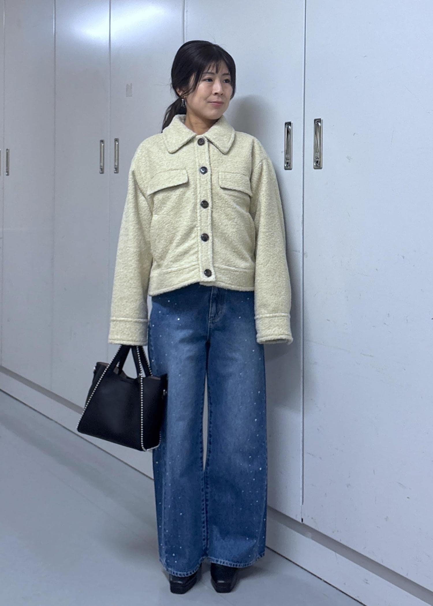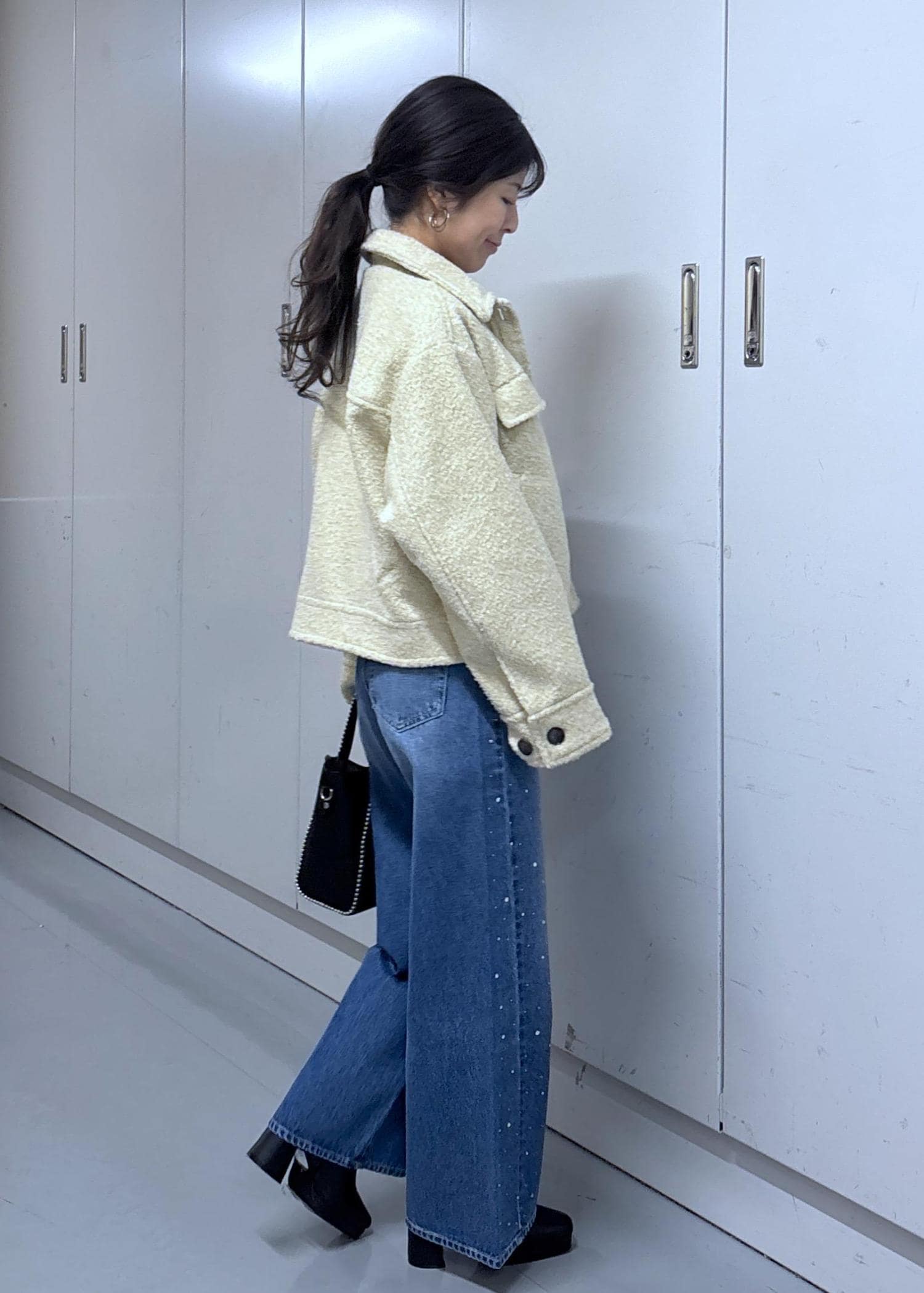 VISくるくる圧縮ボアカバーオールベージュ / F¥7,692レビュー156cm/F着用。着丈はお尻にかかる長さで袖丈は手の甲が隠れるながさです。ブークレー素材で厚みがしっかりありとても温かく着られます◎少しボリュームがありますがコンパクトな丈感と大きい胸ポケットが目線を上げてくれてすっきり見え。明るい色味なので春先まで長く着用できますよ‼︎