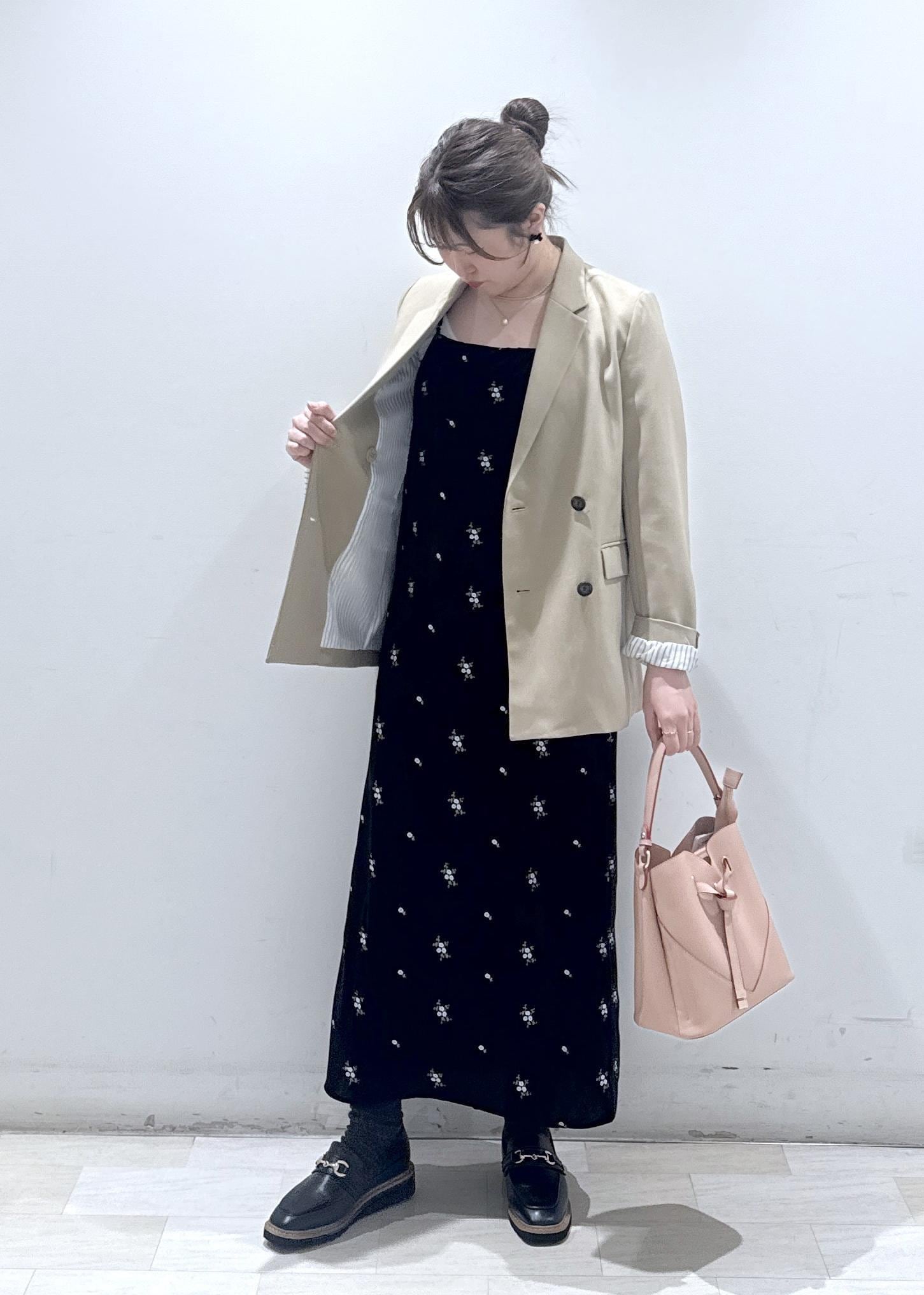 今回は美easyウーリッシュジャケットに、Iラインのベロアキャミワンピースを着て綺麗めなコーディネートにしてみました♪